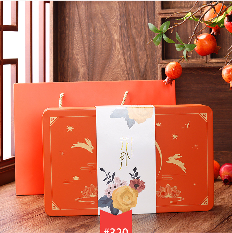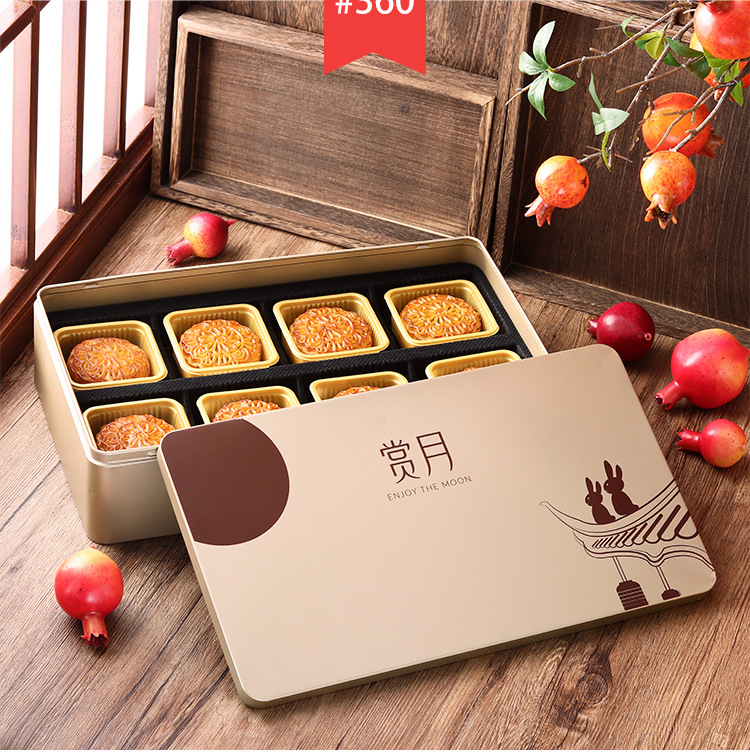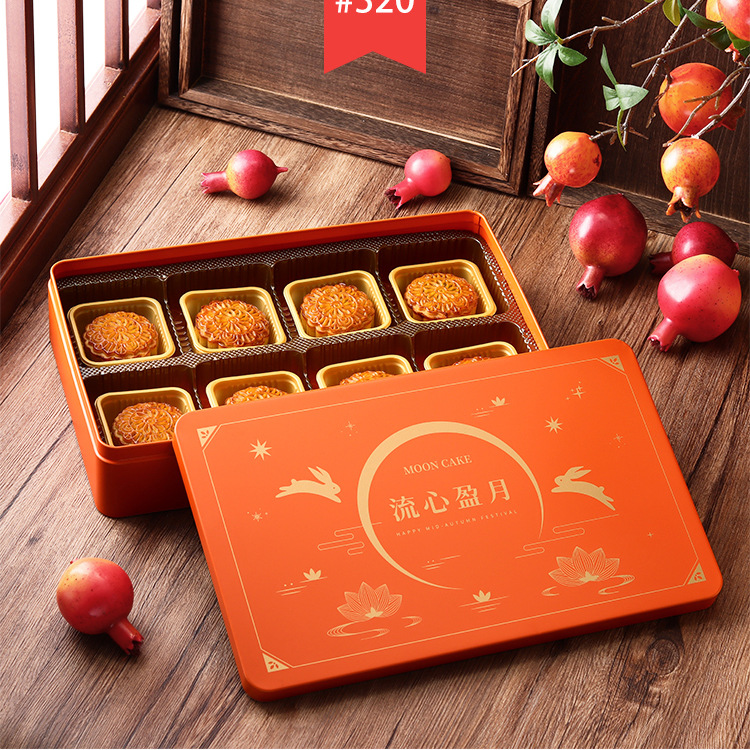 Середины осени лунный торт коробка лунный торт подарочная коробка упаковочная коробка высокого класса железная коробка пустая коробка поток Сердце Лед Кожа Подарочная коробка 8