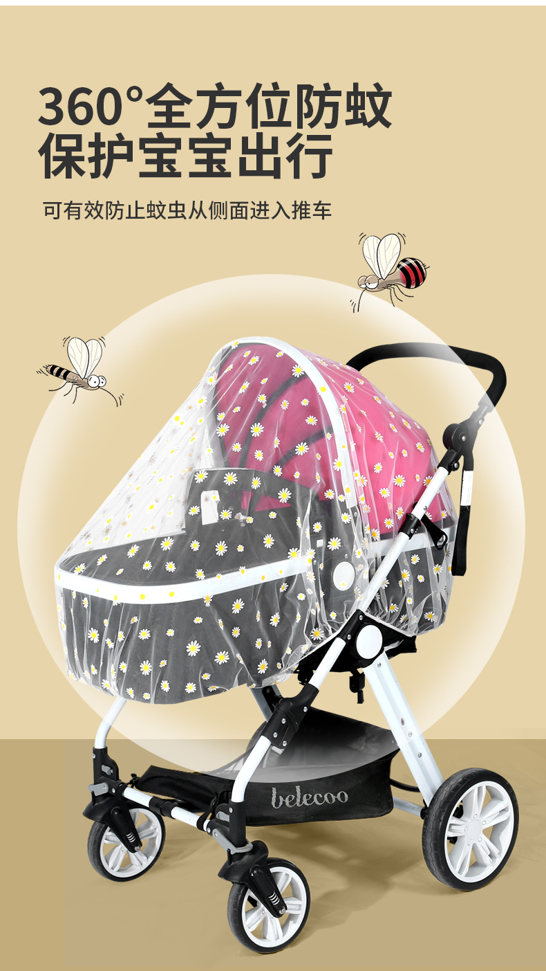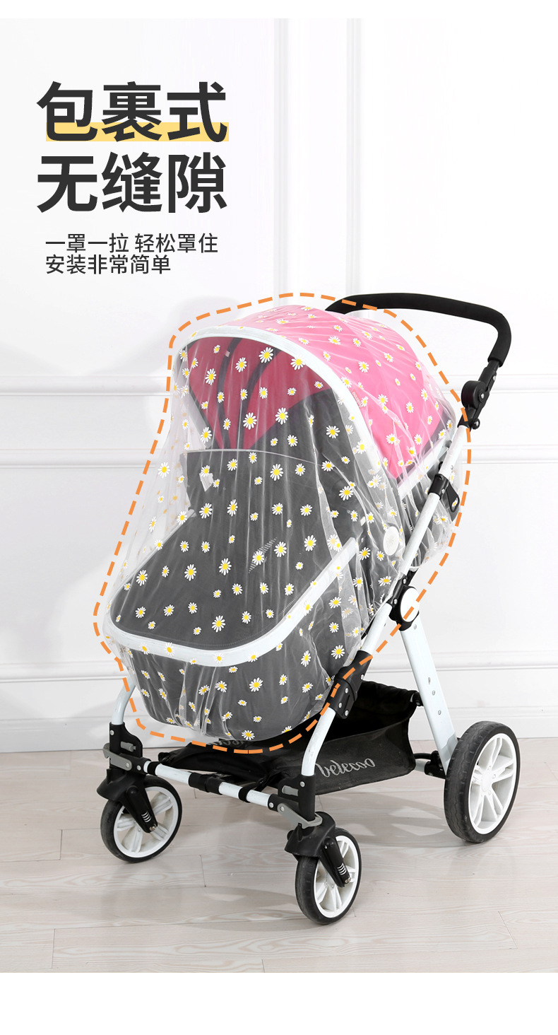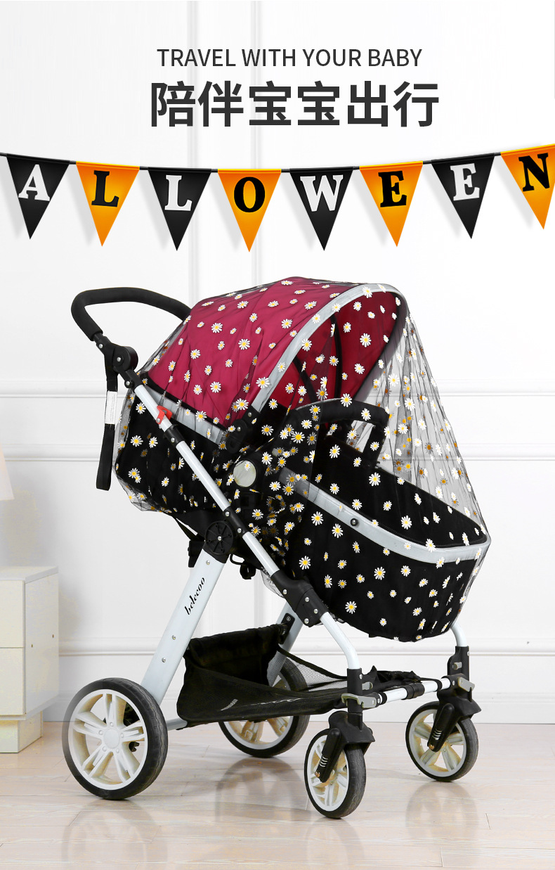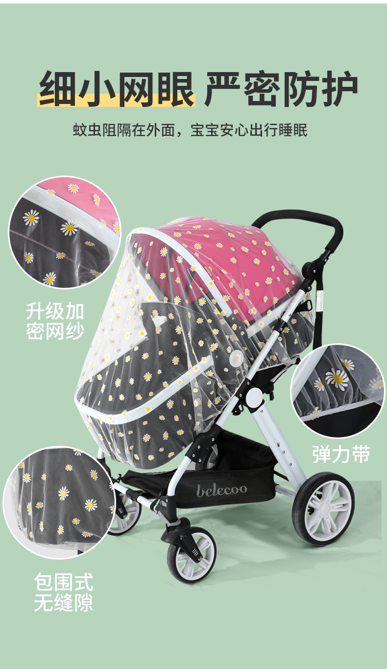 Москитная сетка для коляски, звездная хризантема, полная крышка, коляска с принтом, москитная сетка, увеличенный зашифрованный детский зонтик, коляска, противомоскитная сетка
