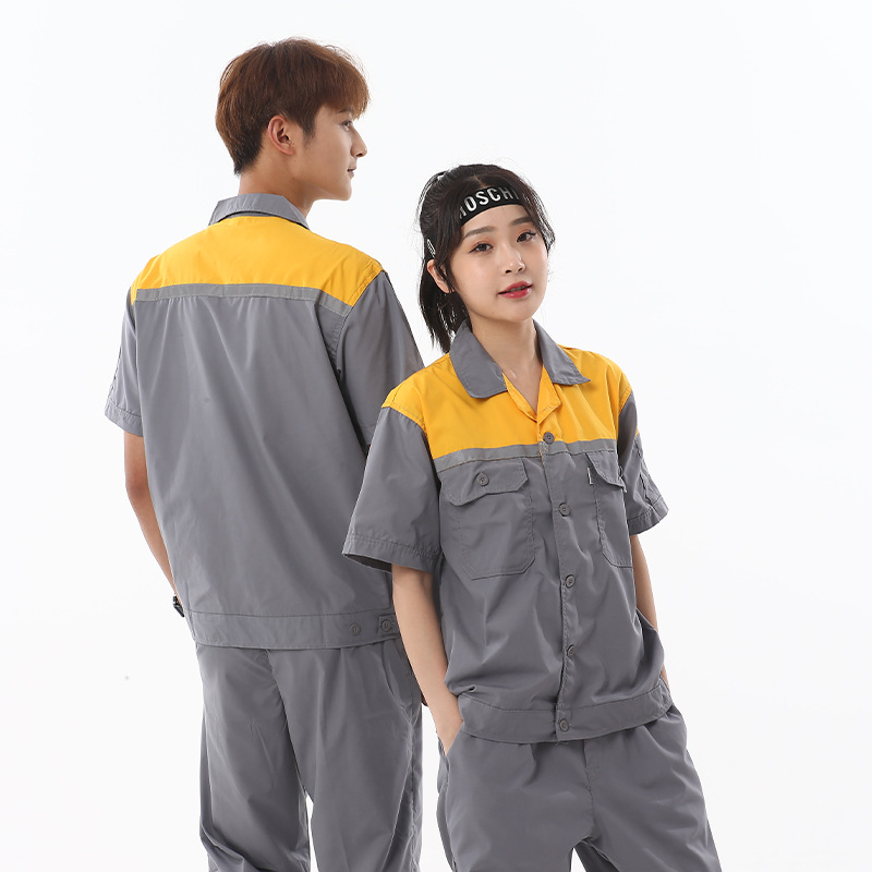 Летняя защитная одежда с короткими рукавами, тонкая дышащая рабочая одежда, износостойкая одежда для авторемонта, заводская одежда, рабочая одежда для мастерской из полиэстера и хлопка оптом
