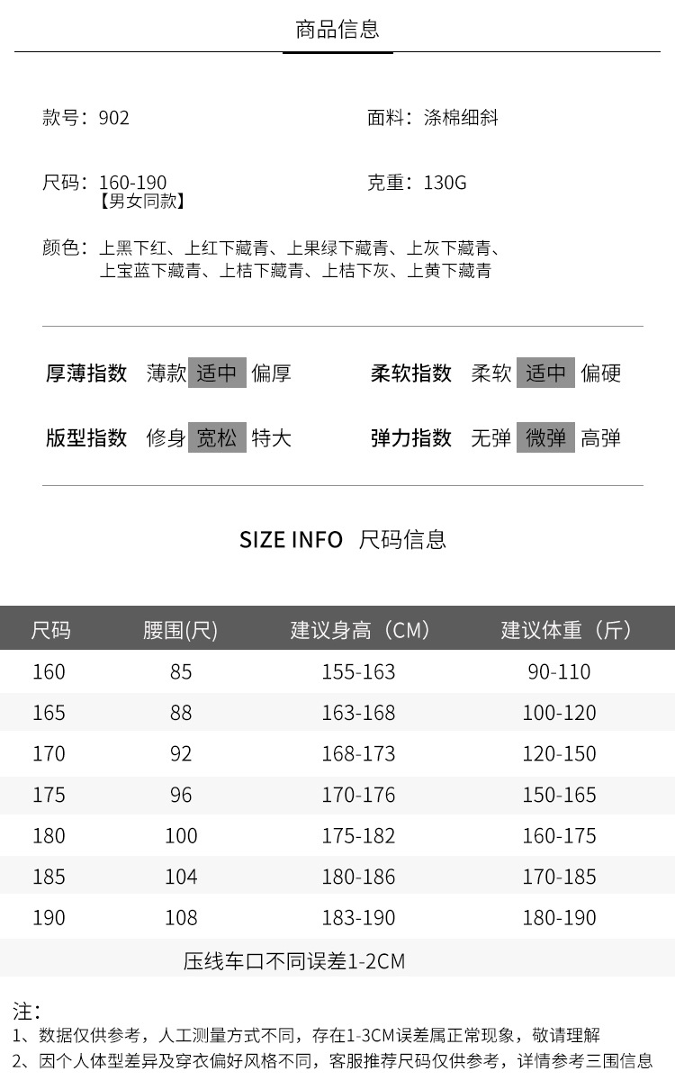 160 [И]; 165 [М]; 170 [Л]; 175 [XL]; 180 [2XL]; 185 [3XL]; 190 [4XL]