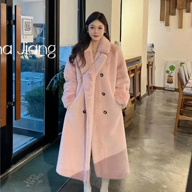 Зимнее длинное пальто из искусственного меха под норку 2025 года с хлопковой подкладкой для женщин, модное пальто из искусственного меха.