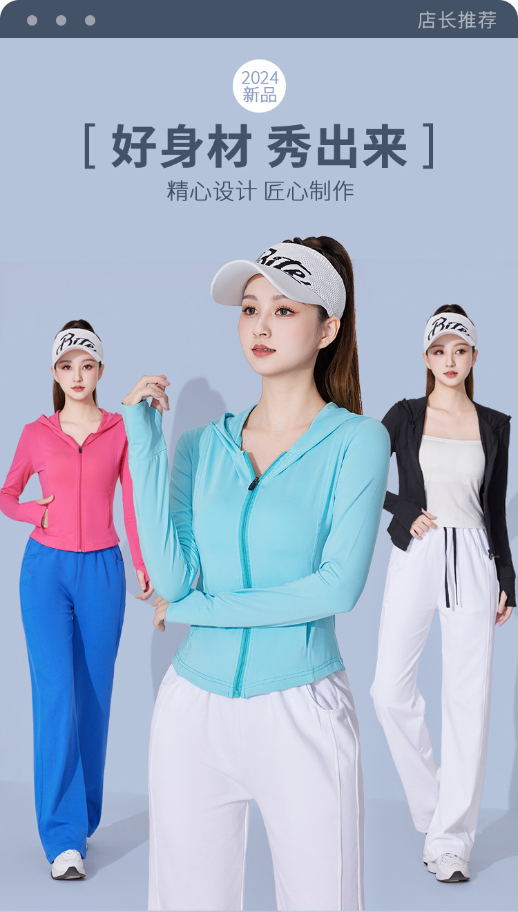 2024 Mojiada спортивный фитнес приталенный солнцезащитный крем для похудения с капюшоном кардиган пальто для женщин