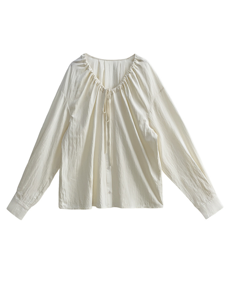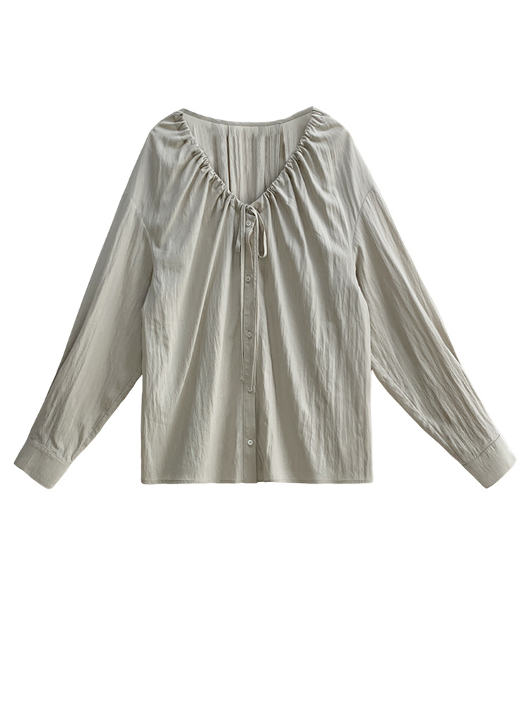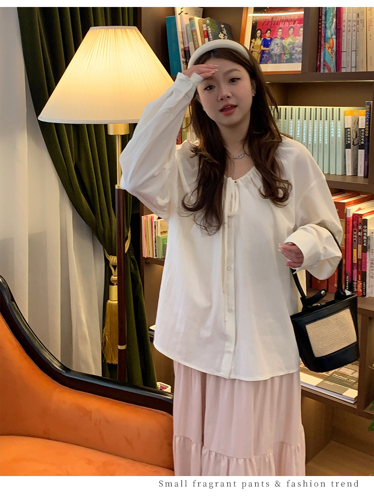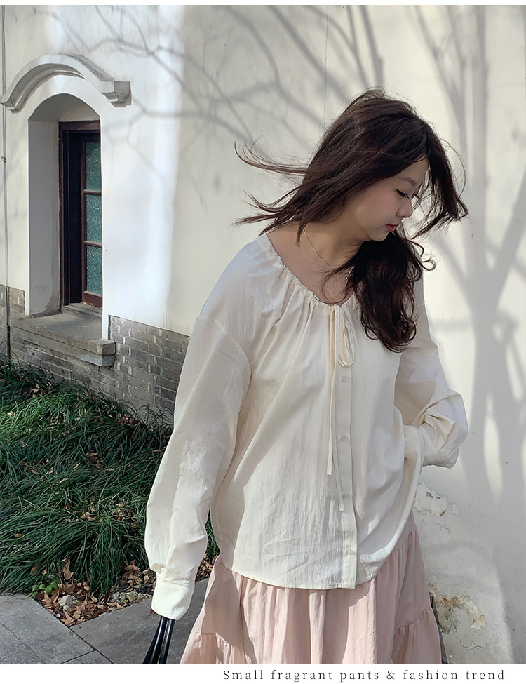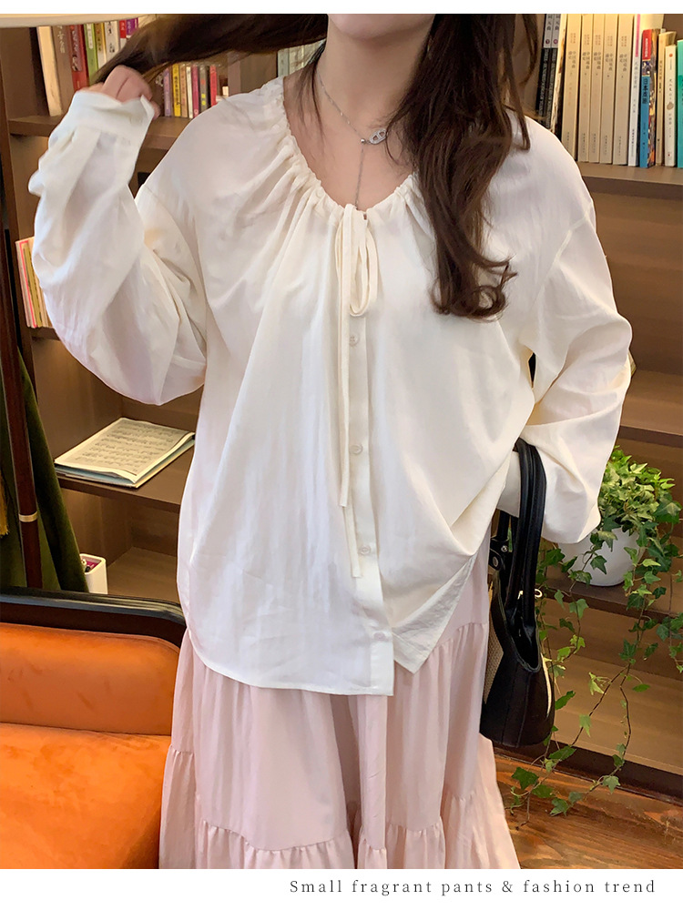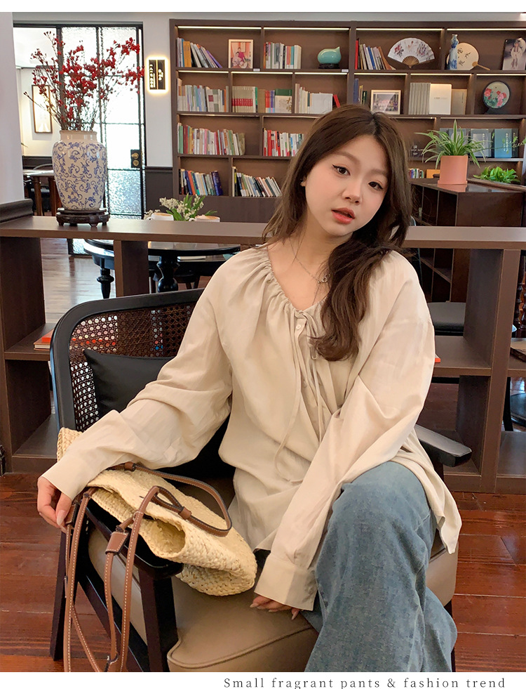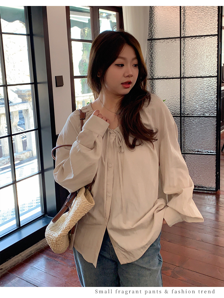 Плюс размер женская элегантная Нежная кружевная рубашка с V-образным вырезом на шнуровке, удобная свободная рубашка с длинным рукавом в женском стиле