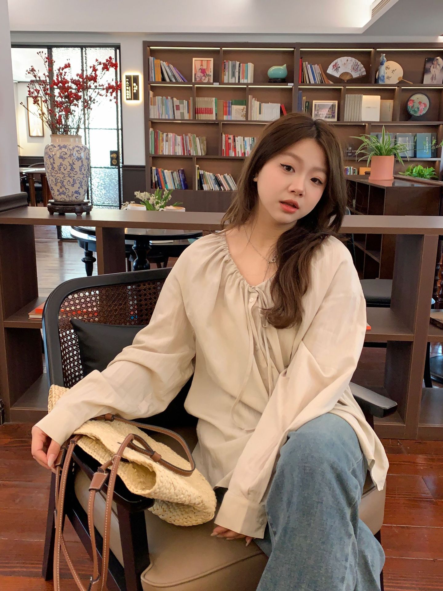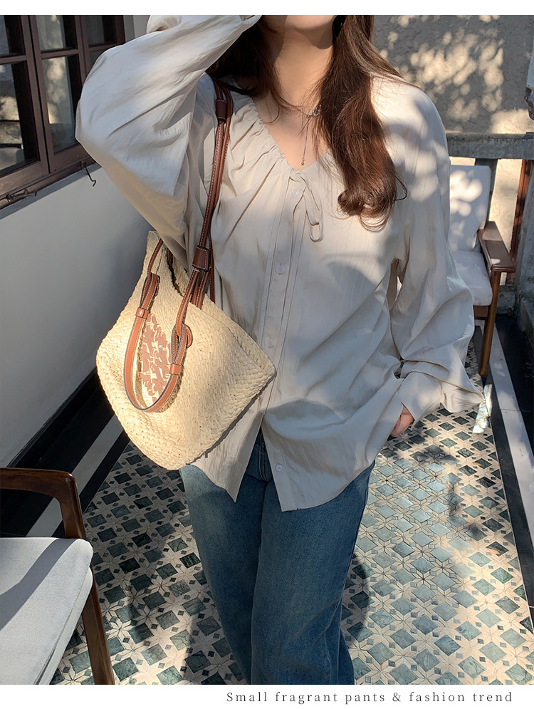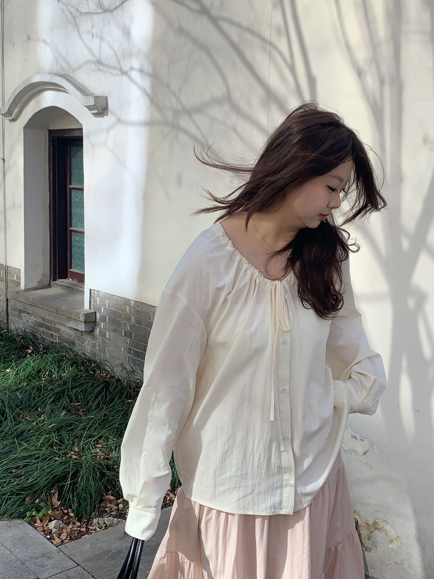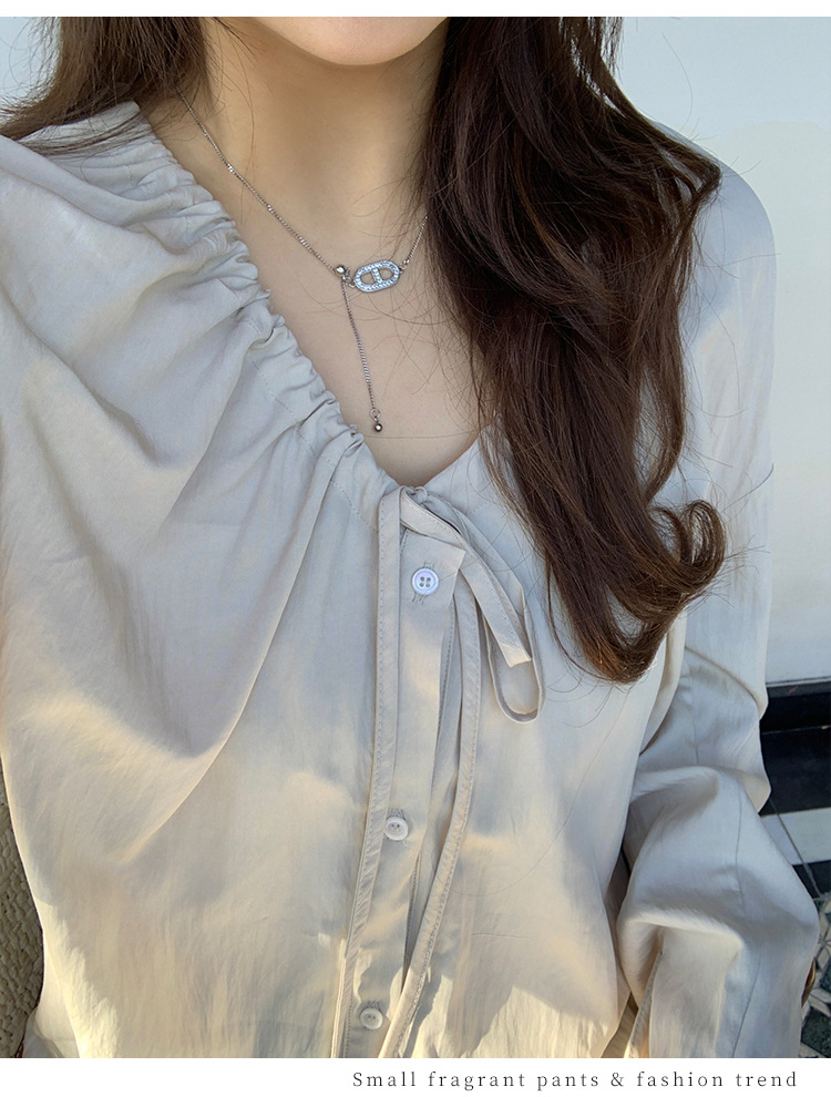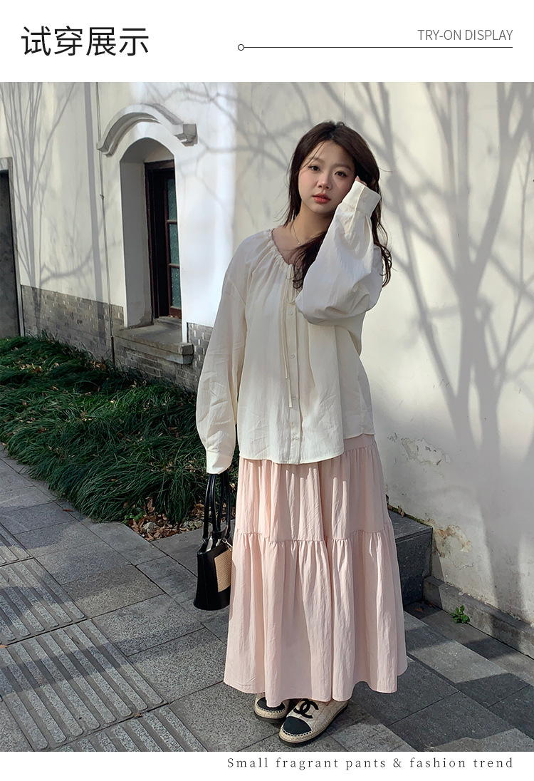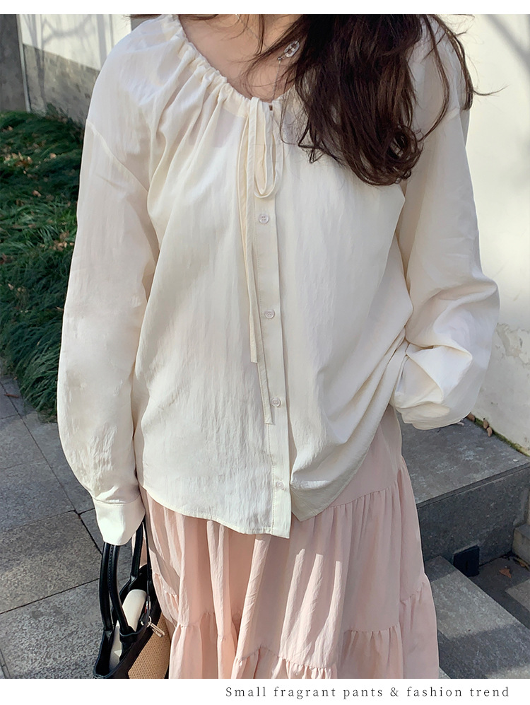 Плюс размер женская элегантная Нежная кружевная рубашка с V-образным вырезом на шнуровке, удобная свободная рубашка с длинным рукавом в женском стиле