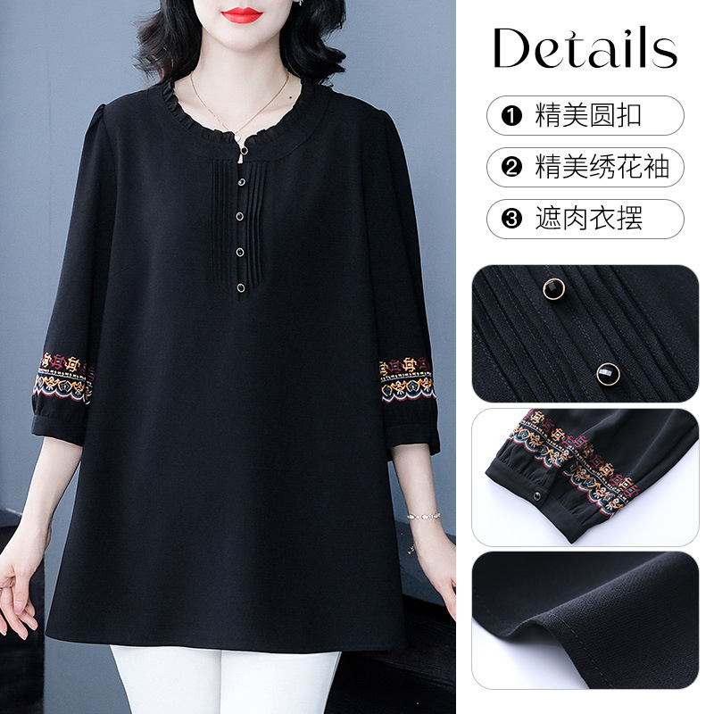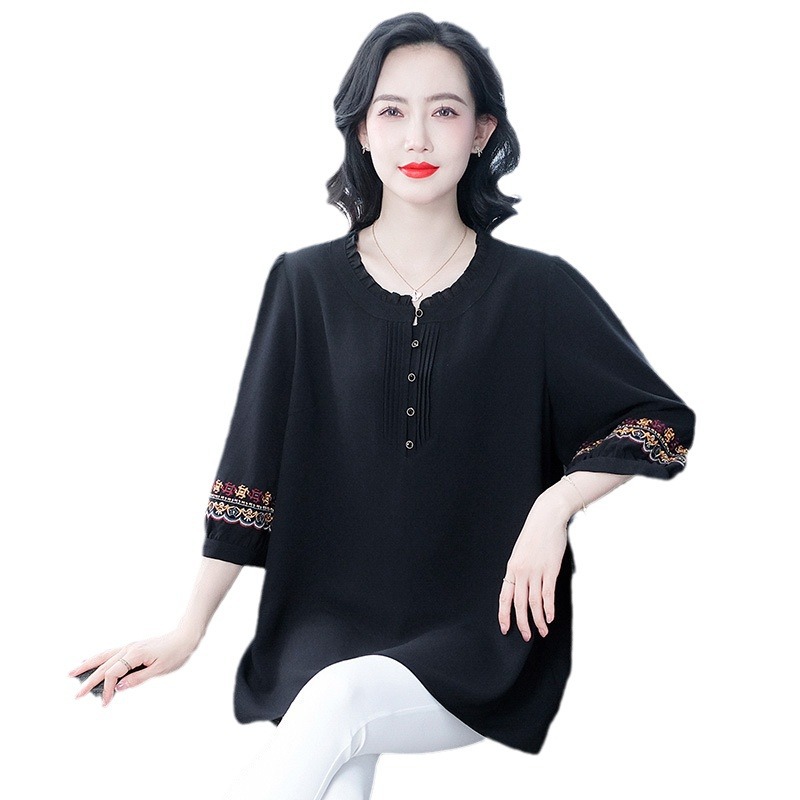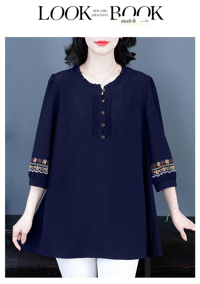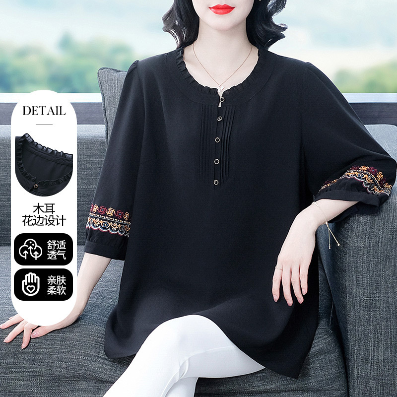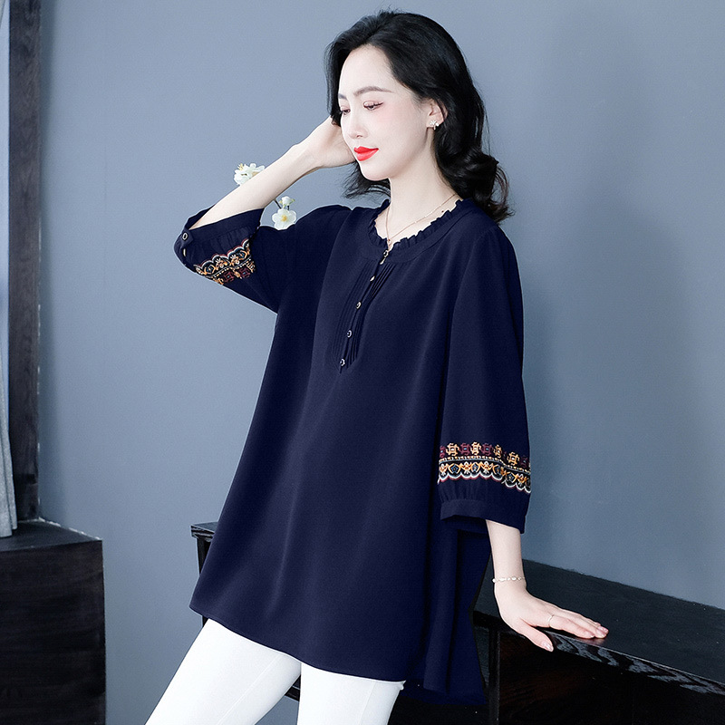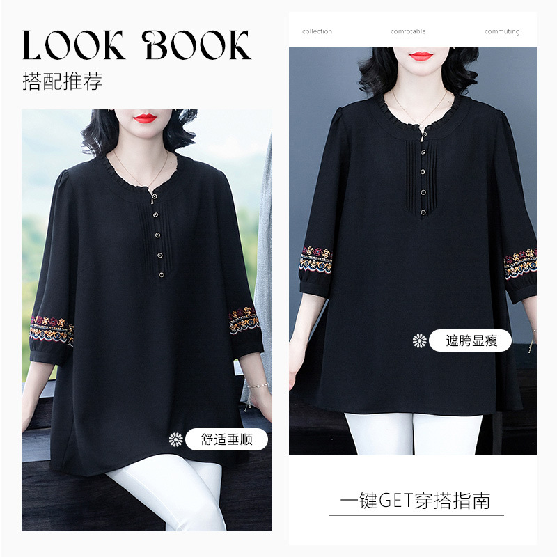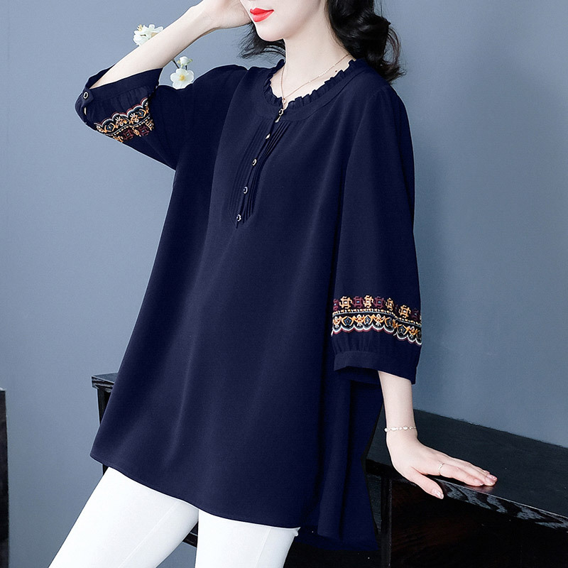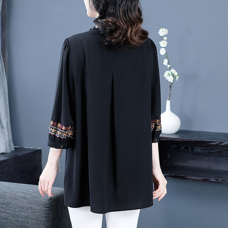 Весенне-летняя элегантная вышитая в стиле ретро женская одежда больших размеров для мам среднего и пожилого возраста, Свободная Повседневная шифоновая рубашка с низом