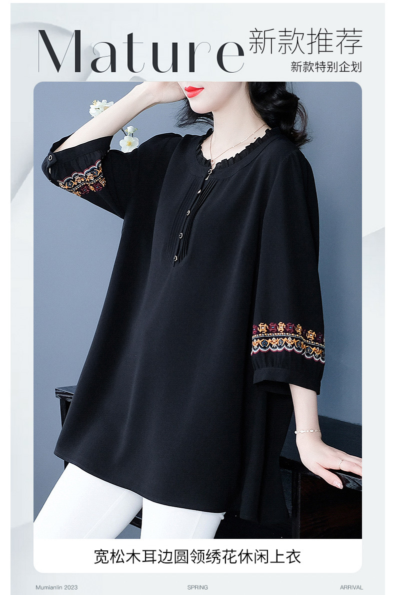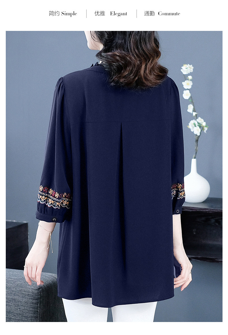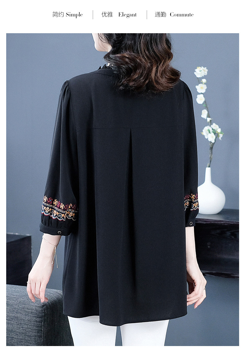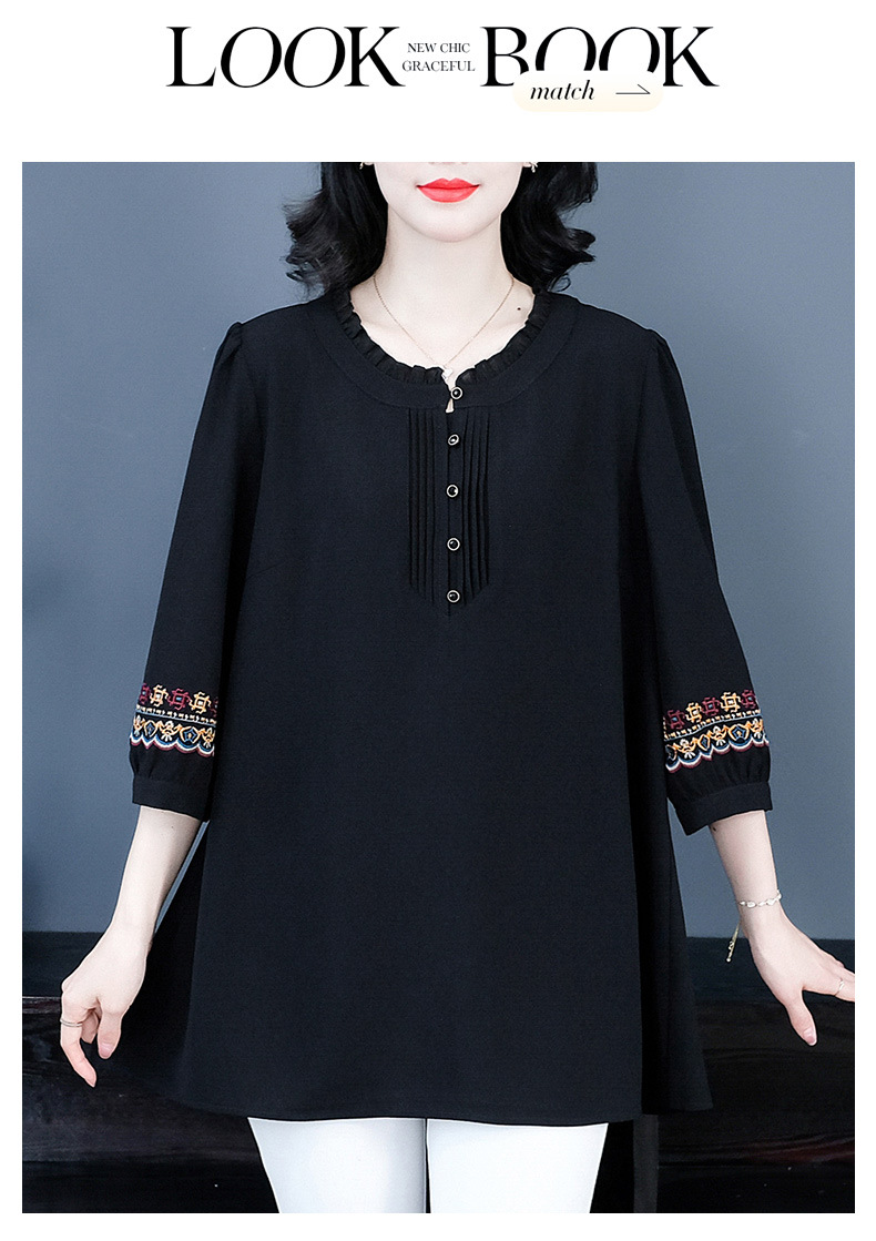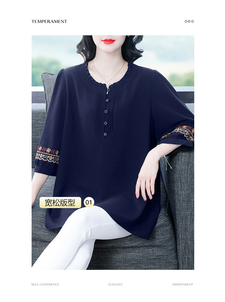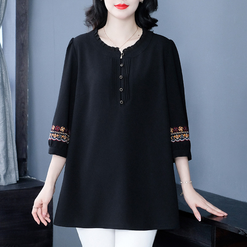 Весенне-летняя элегантная вышитая в стиле ретро женская одежда больших размеров для мам среднего и пожилого возраста, Свободная Повседневная шифоновая рубашка с низом