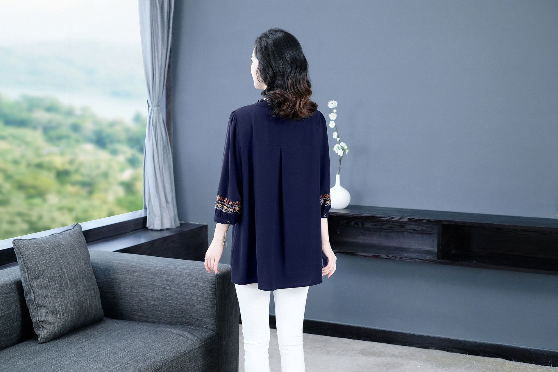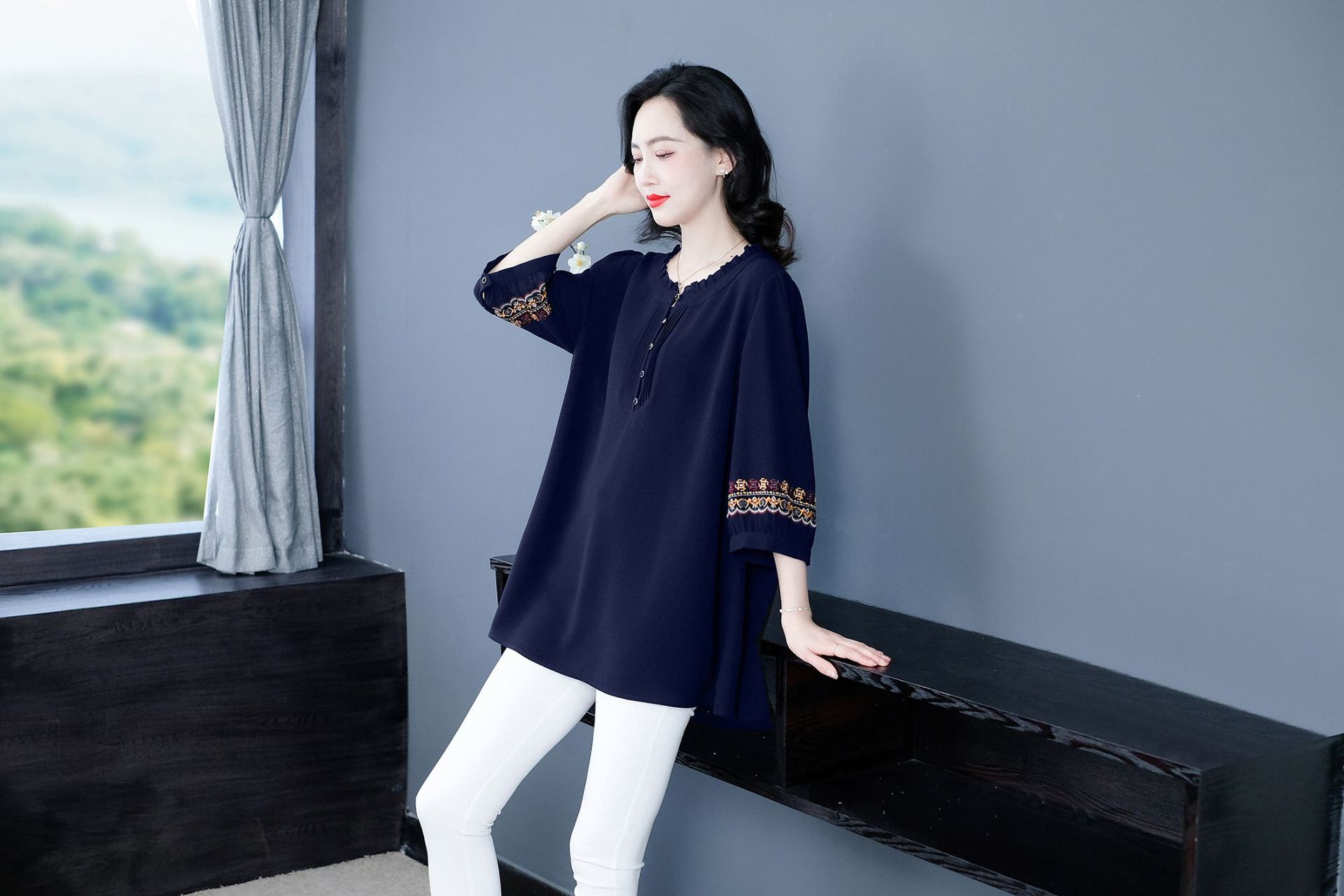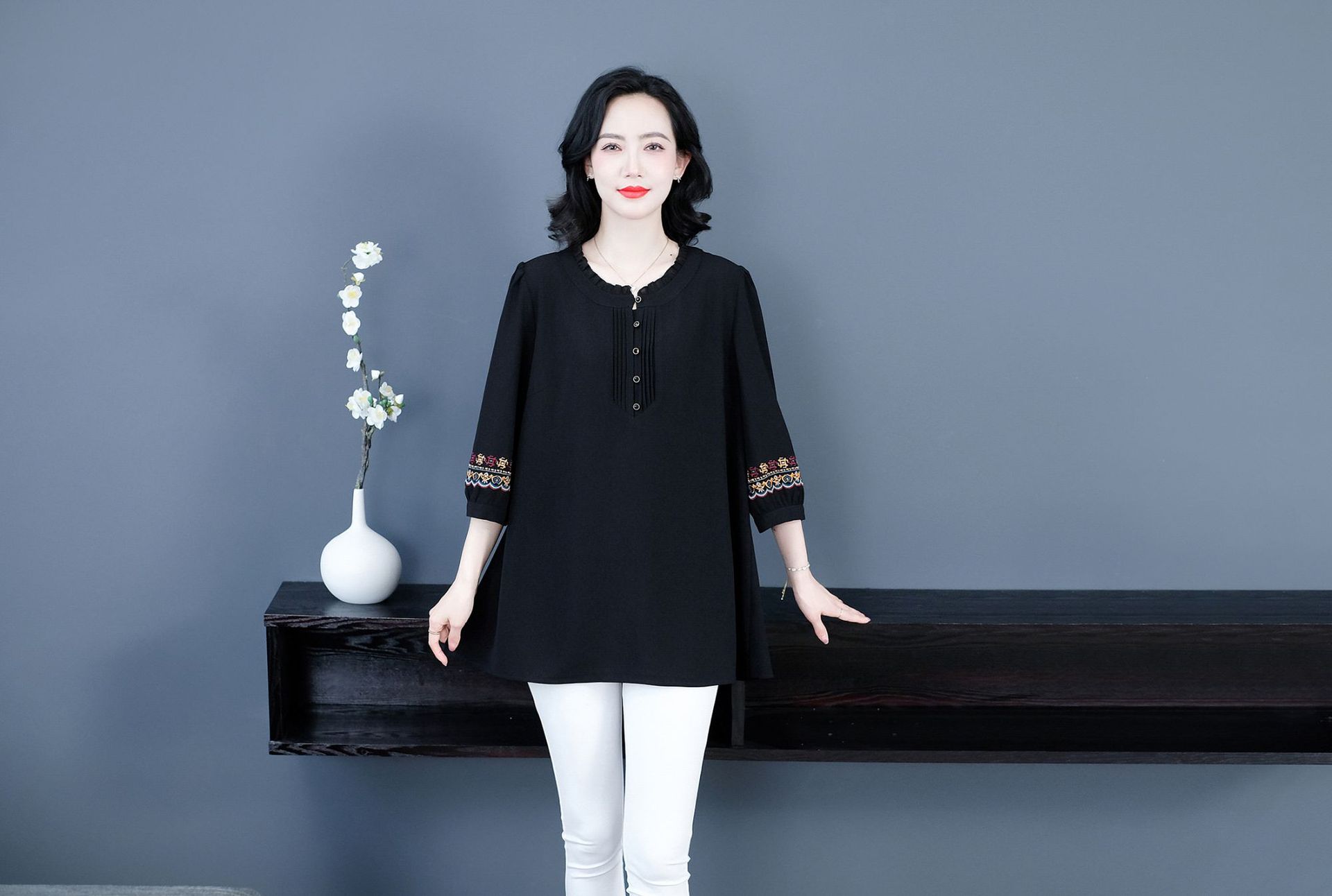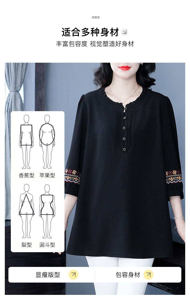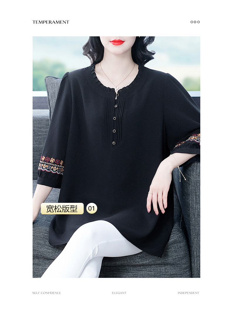 Весенне-летняя элегантная вышитая в стиле ретро женская одежда больших размеров для мам среднего и пожилого возраста, Свободная Повседневная шифоновая рубашка с низом