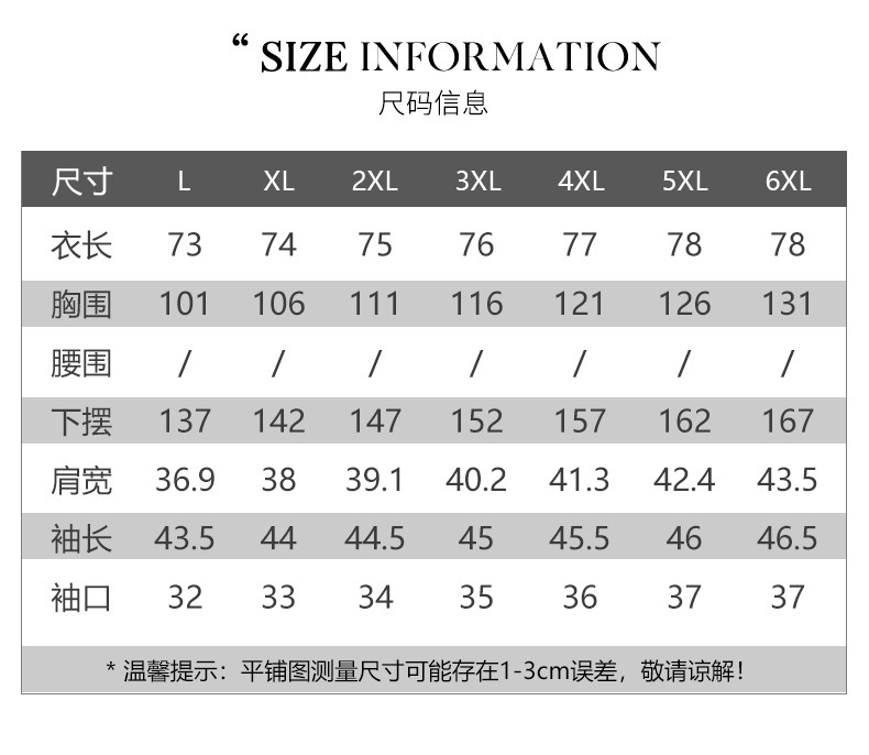L (рекомендуется 50-60kg ); XL (рекомендуется 60-70kg ); 2XL (рекомендуется 70-80kg ); 3XL (рекомендуется 80-90kg ); 4XL (рекомендуется 90-100kg ); 5XL (рекомендуется 100-110kg ); 6XL (рекомендуется 110-120kg )