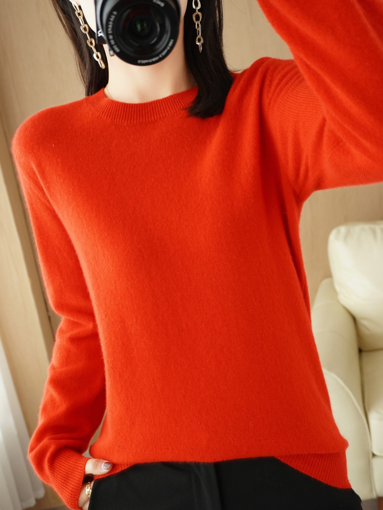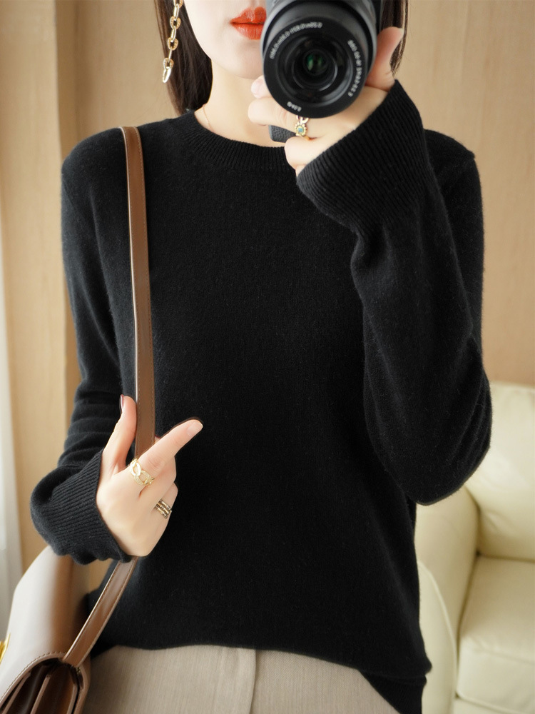 Женский свитер на осень и зиму, с круглым вырезом, с длинными рукавами, вязаный, трикотажный, женский базовый свитер для ношения под одеждой, женский базовый топ