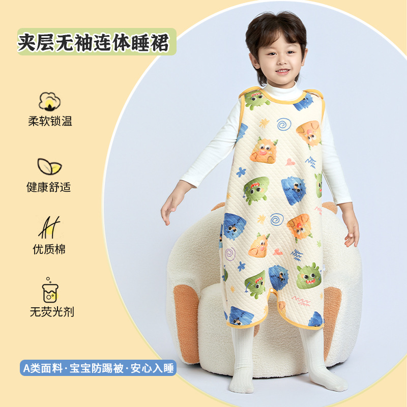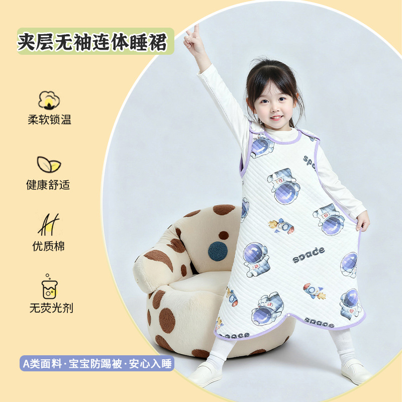 Спальный мешок класса А, весенне-осенний жилет для детей среднего и большого размера, цельная Ночная рубашка без рукавов, теплое одеяло контрастных цветов, стеганая Весенняя ночная рубашка с защитой от ударов