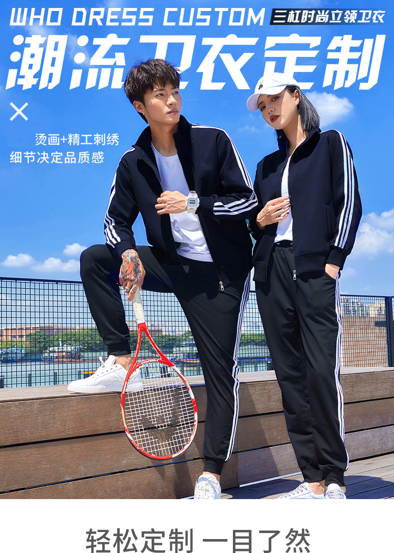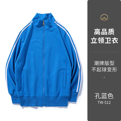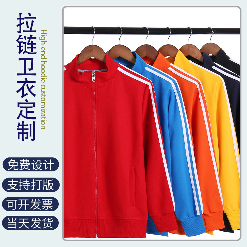 Осенне-зимняя тонкая классическая униформа, однотонная, с тремя полосками, повседневная спортивная толстовка с воротником-стойкой на молнии, на флисовой подкладке, с индивидуальным логотипом и длинными рукавами