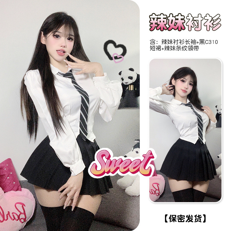 Рубашка Hot Girl с длинным рукавом + темно-серый C310 + Горячий галстук для девочек; Рубашка горячей девушки с длинным рукавом + черный C310 + Горячий галстук девушки