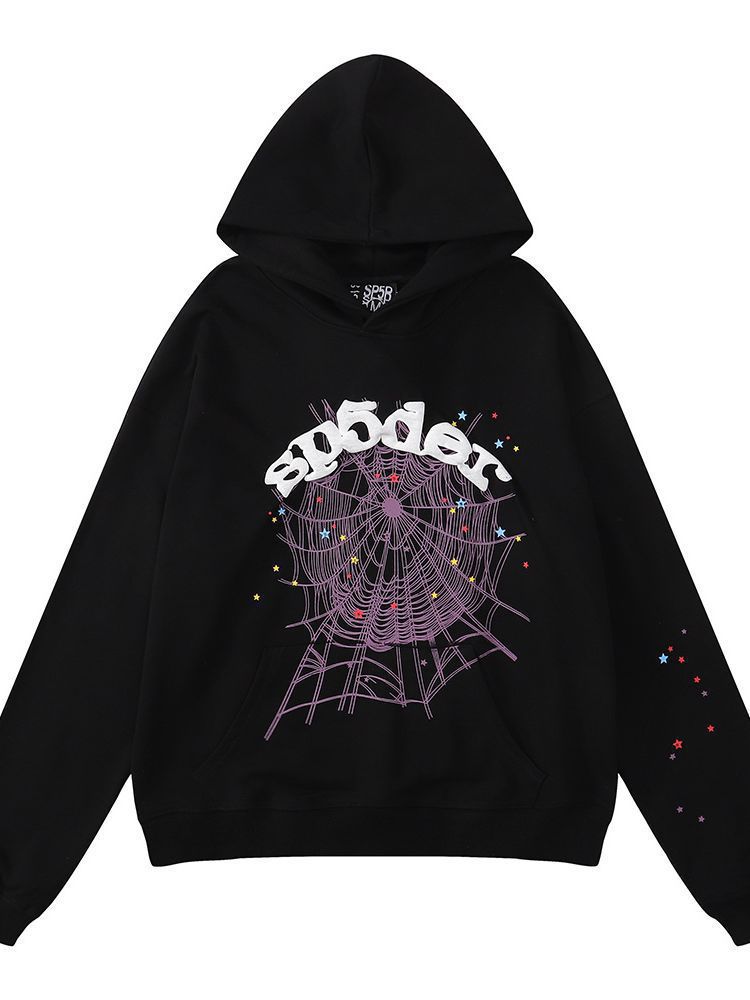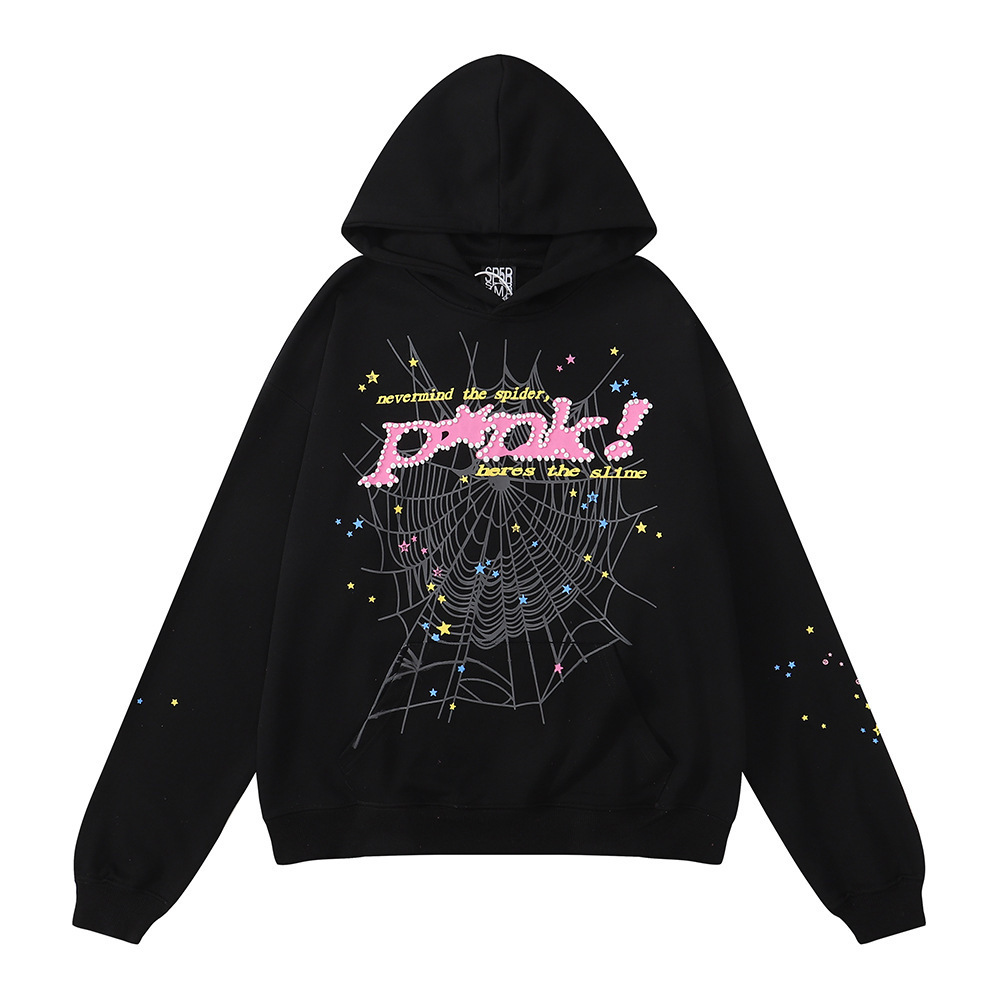 Молодая Звезда же Sp5der 555555 Розовый свитер с капюшоном Мужские и женские с принтом брюки с капюшоном