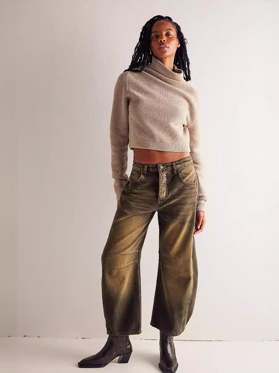 Независимая станция 2024 Трансграничная ebay Европа и США отдых свободная средняя талия трубочки женские джинсы 16848