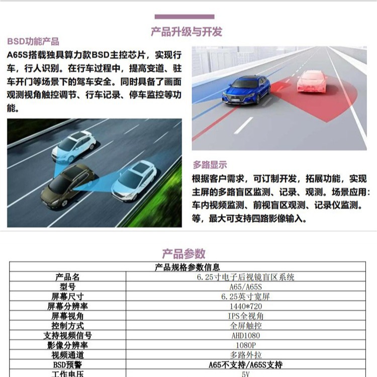 Система помощи водителю A65S CMS: электронное зеркало заднего вида с высоким разрешением, система безопасности для бокового обзора, система помощи при движении в слепых зонах (левая и правая).
