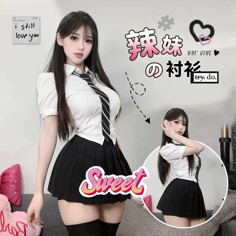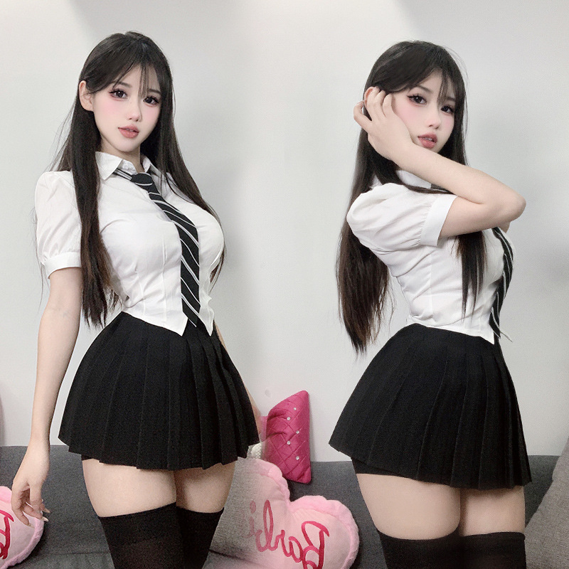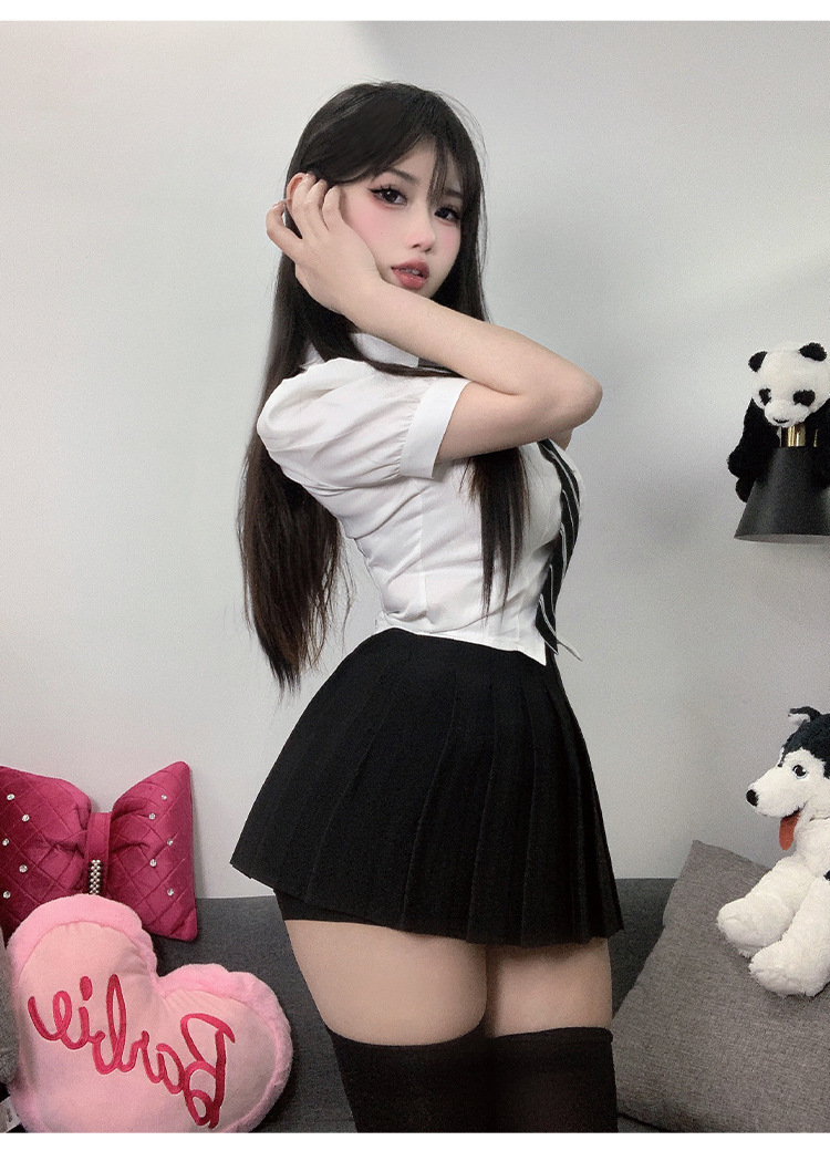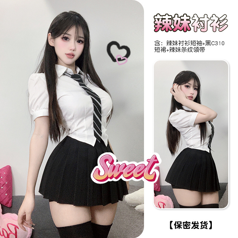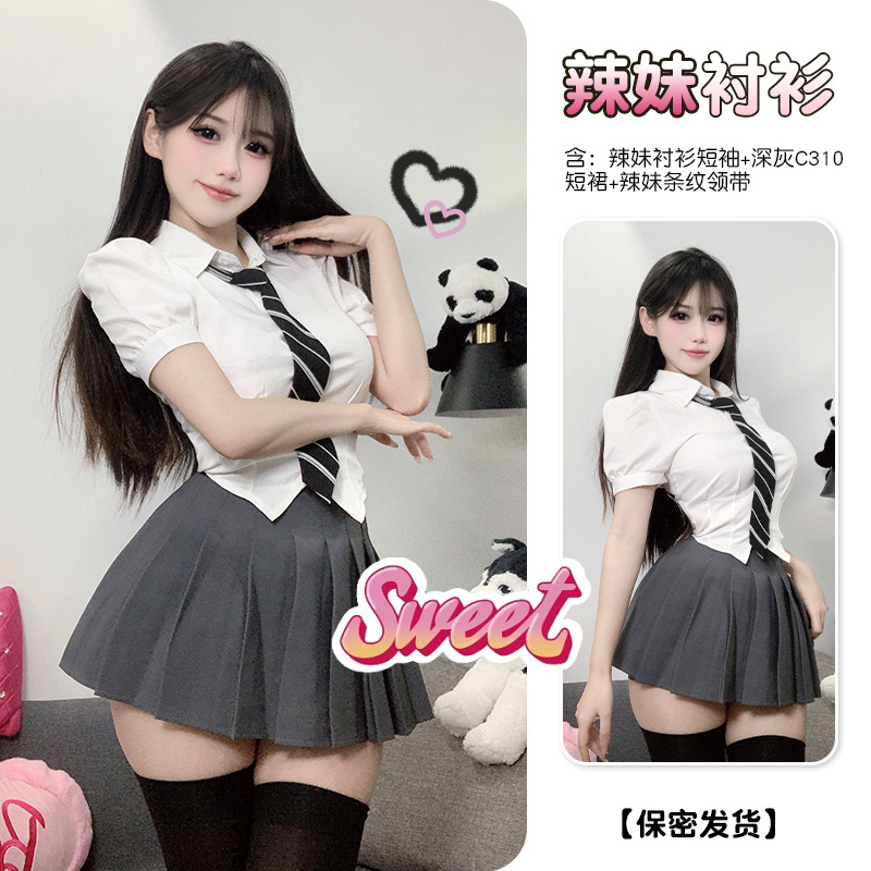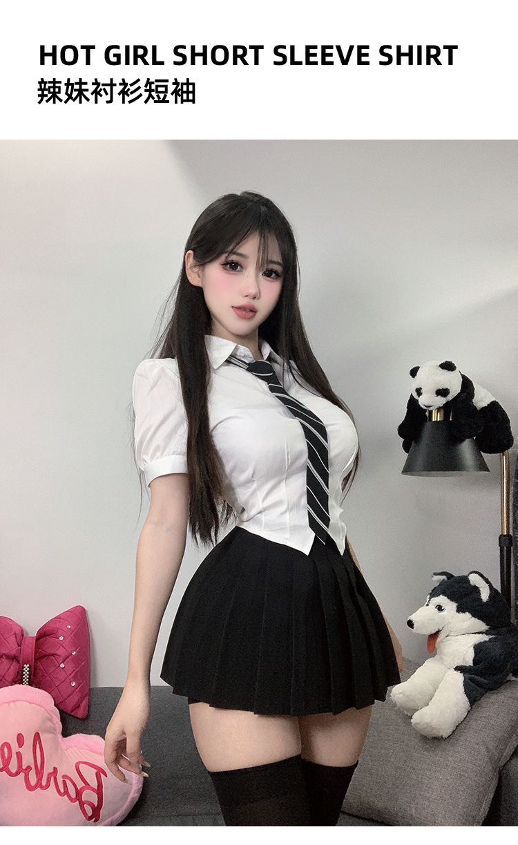Рубашка с короткими рукавами для горячей девушки + черный C310 + галстук для горячей девушки; Рубашка с короткими рукавами для горячей девушки + C310 темно-серый + галстук для горячей девушки