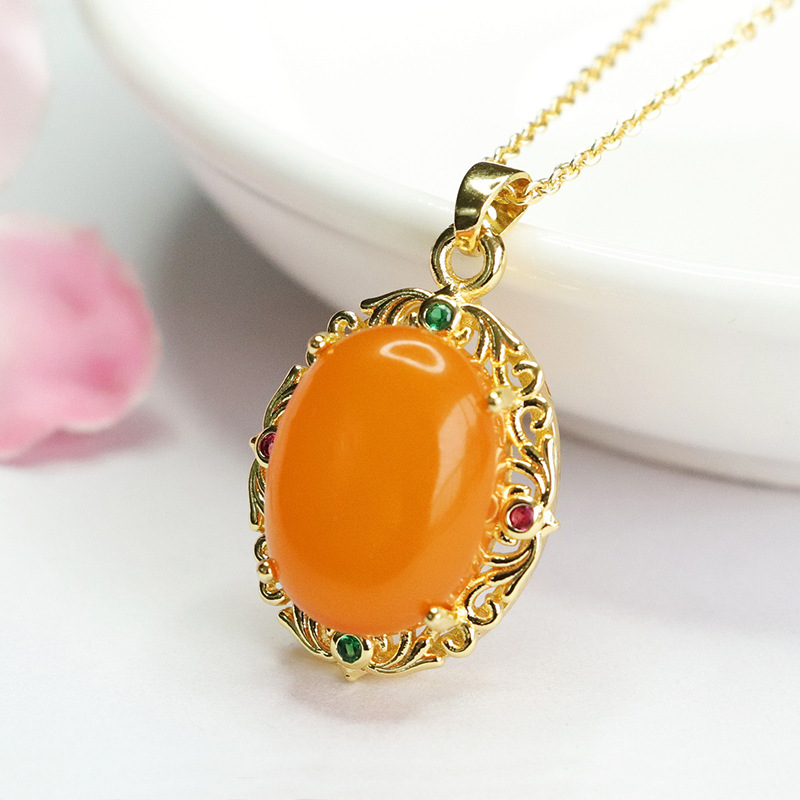 Yiyu натуральный янтарный кулон, полный меда, старый медовый воск ожерелье, украшение ювелирной фабрики оптовая продажа волос HP4022702