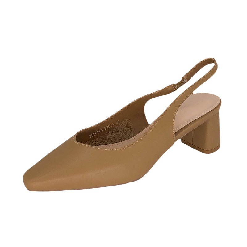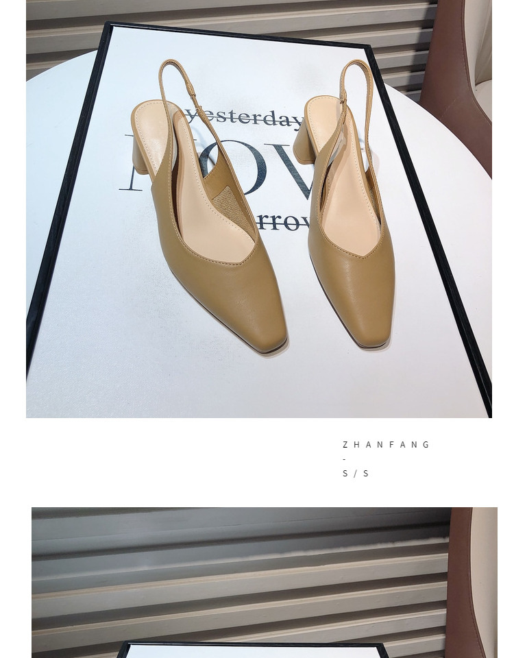 Сандалии Баотоу 2025: Новинка, квадратный носок, массивный каблук, открытая пятка, высокие каблуки, женские сандалии, профессиональная рабочая обувь для женщин
