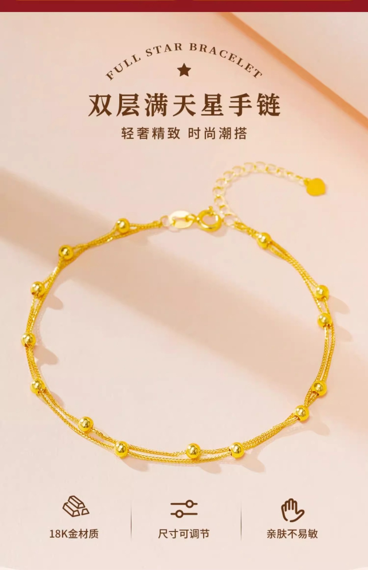 Браслет из 18-каратного золота с детским дыханием au750, двухслойные переносные бусины, цвет золота, женские бусины-разделители, доступные роскошные высококачественные водные ракушки, оптовая продажа