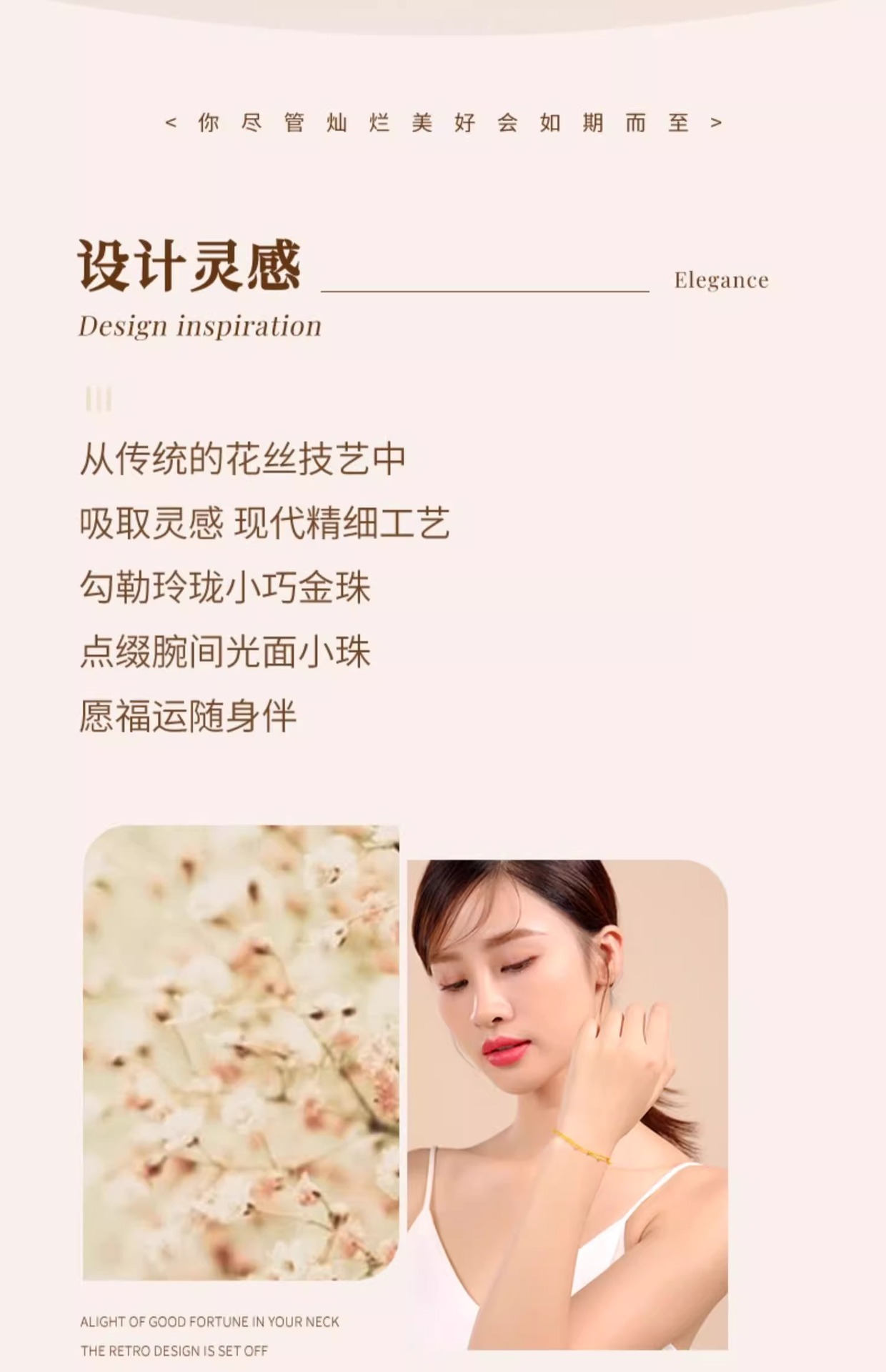 Браслет «Дыхание ребенка» из 18-каратного золота — золотой; Браслет из 18-каратного золота с гипсофилой – розовое золото