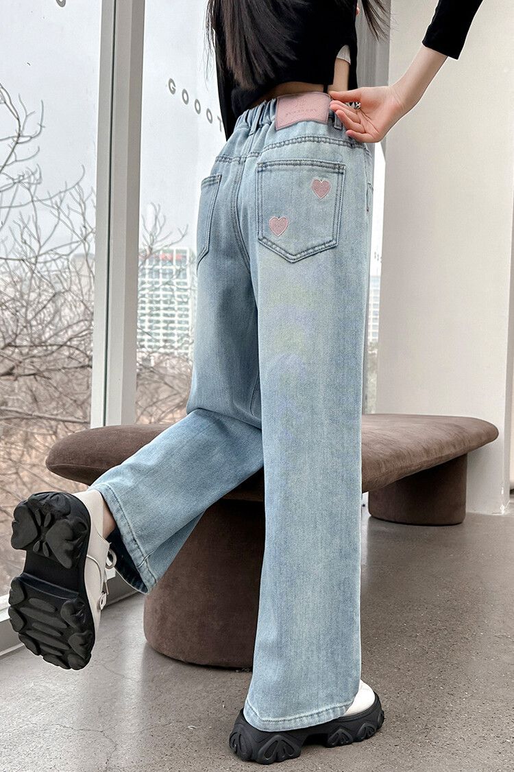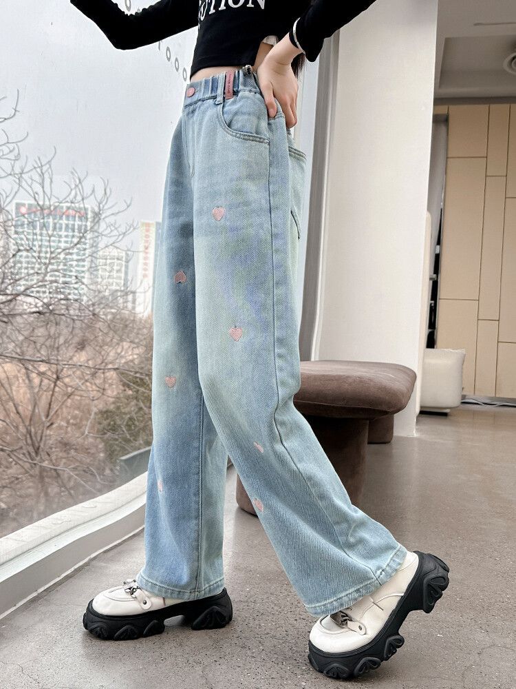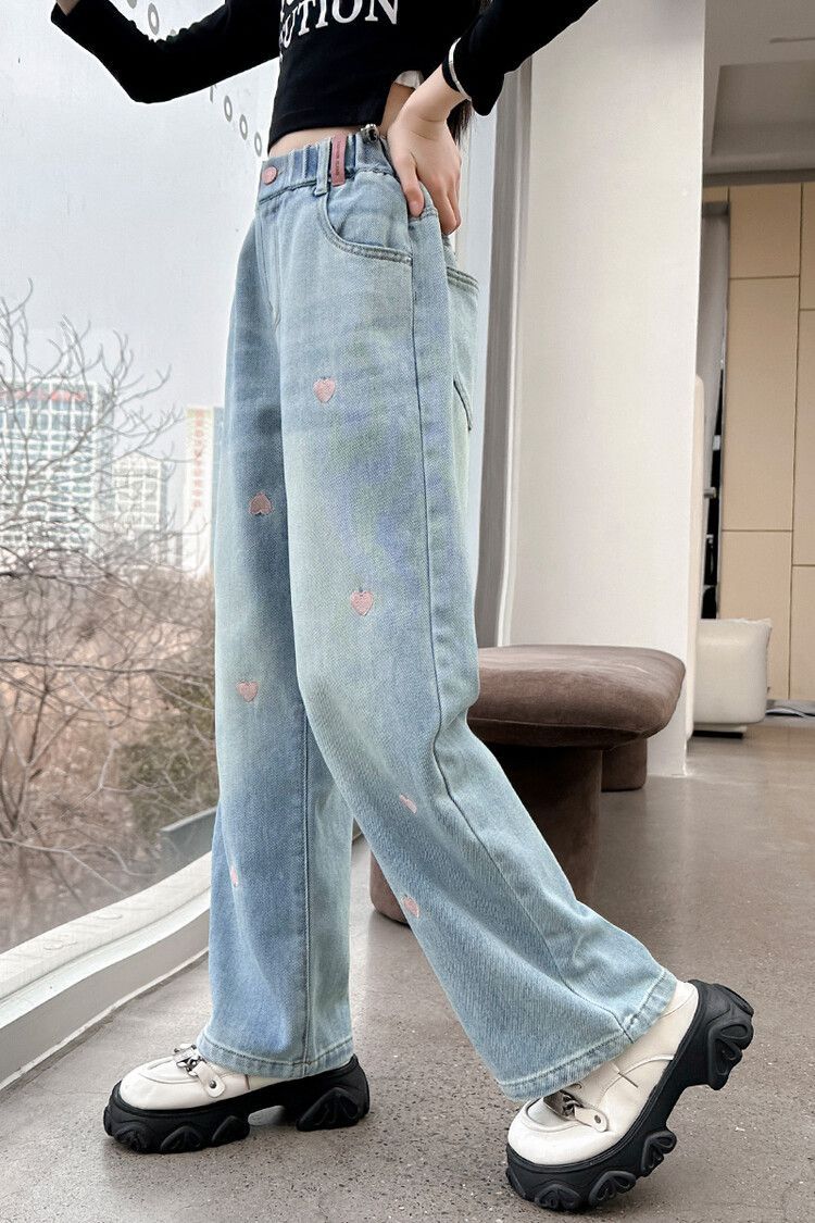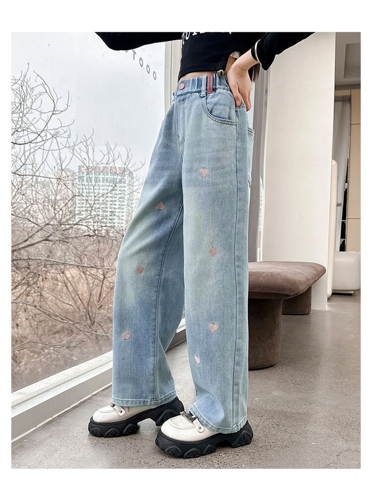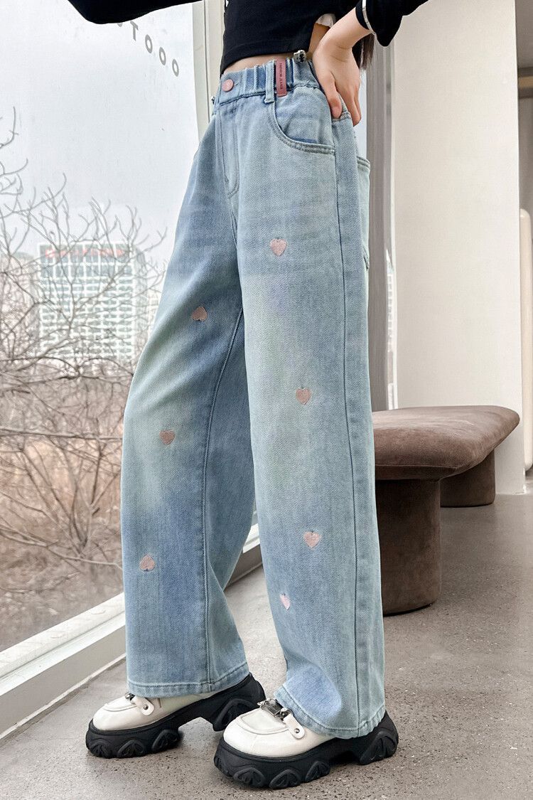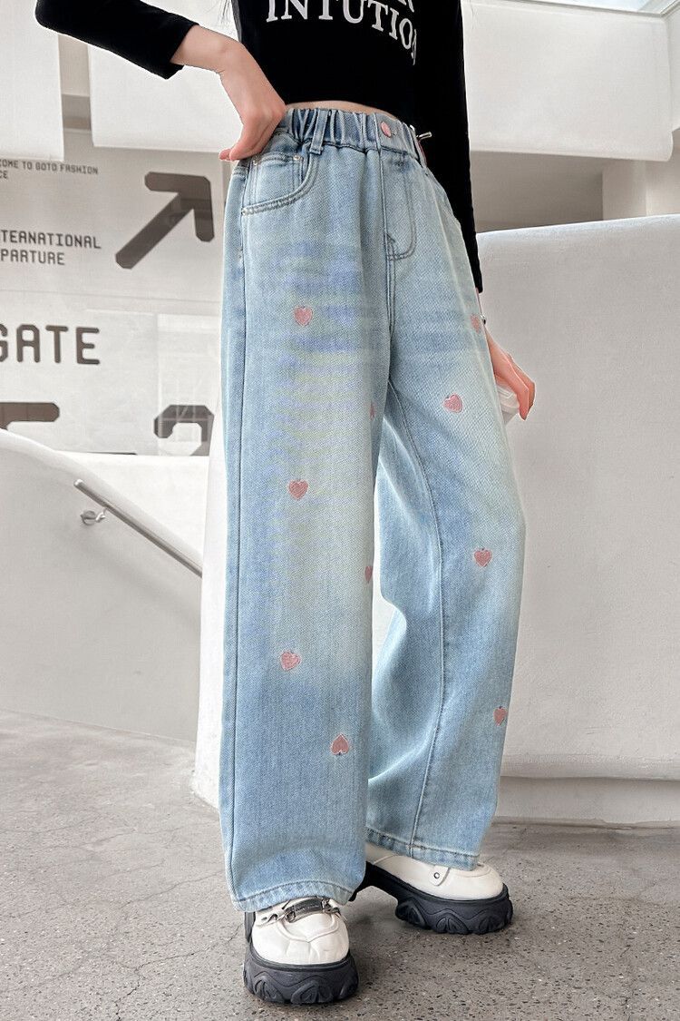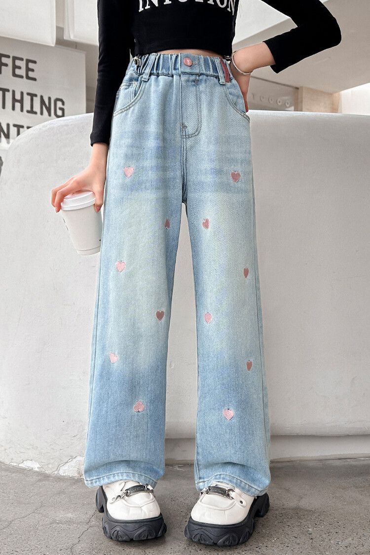 C08 широкие брюки с вышитым сердцем
