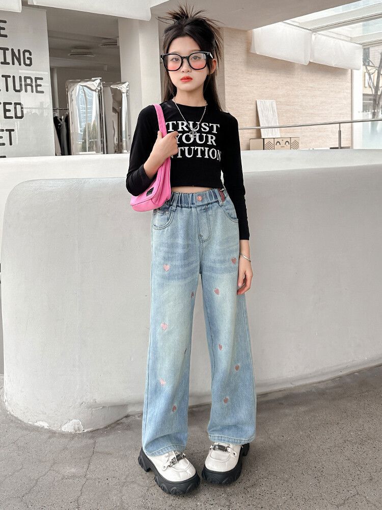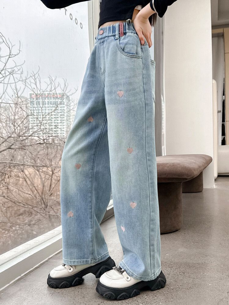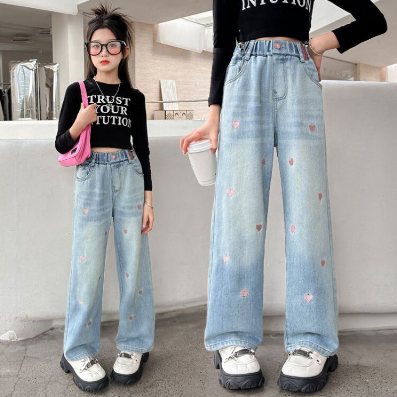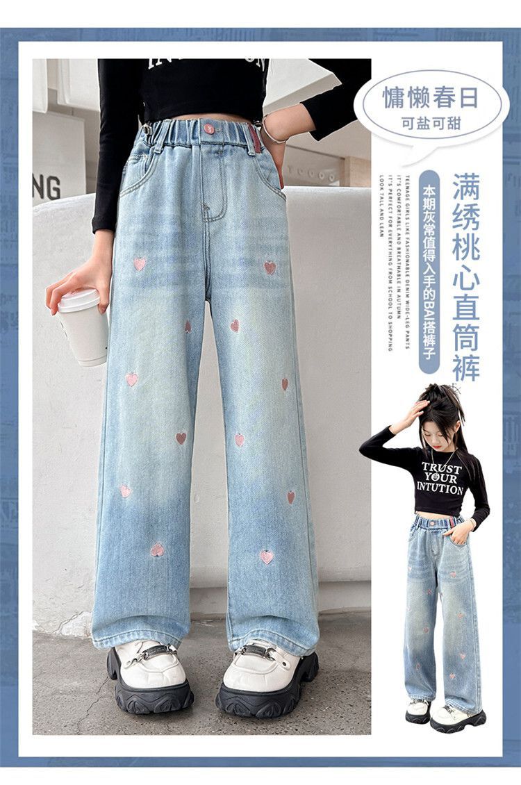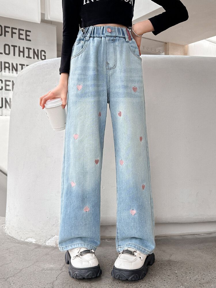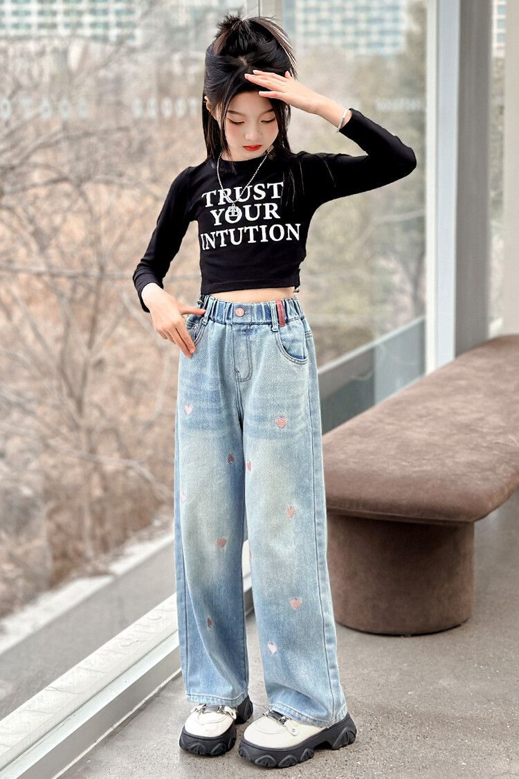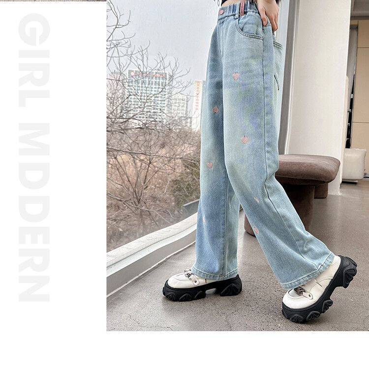 C08 широкие брюки с вышитым сердцем
