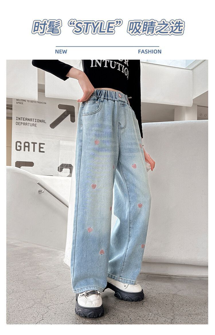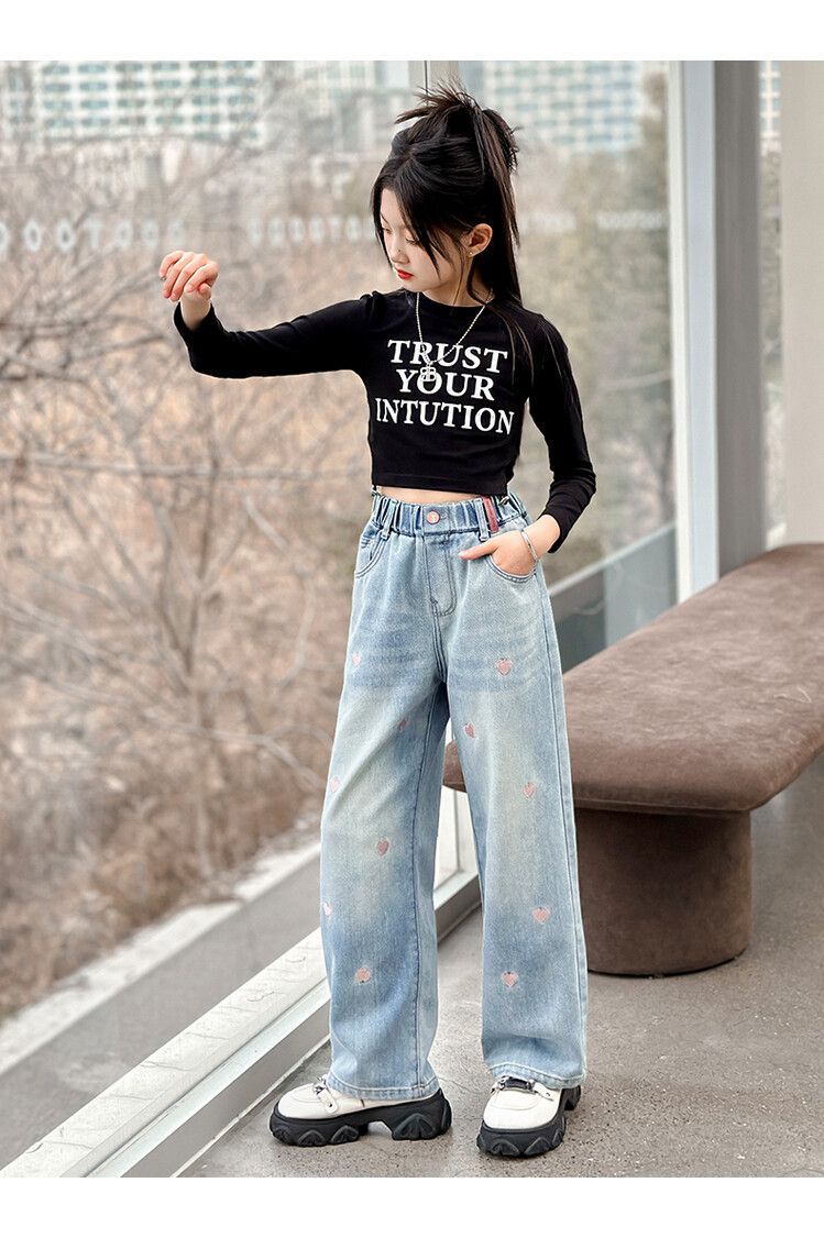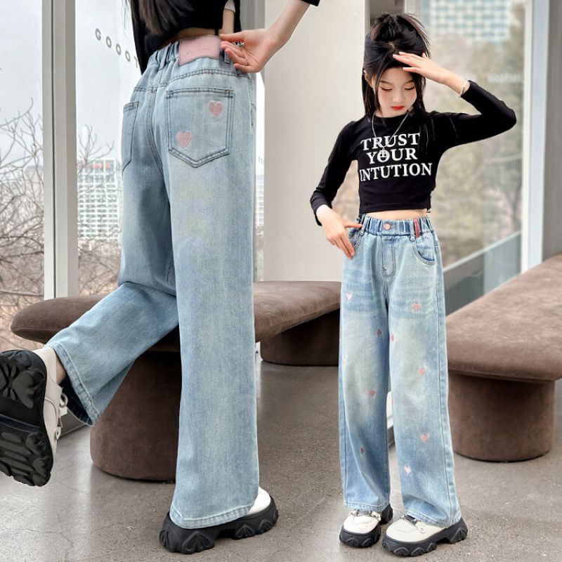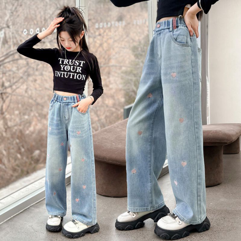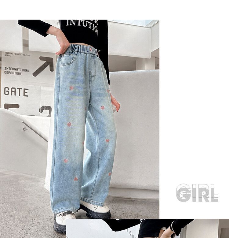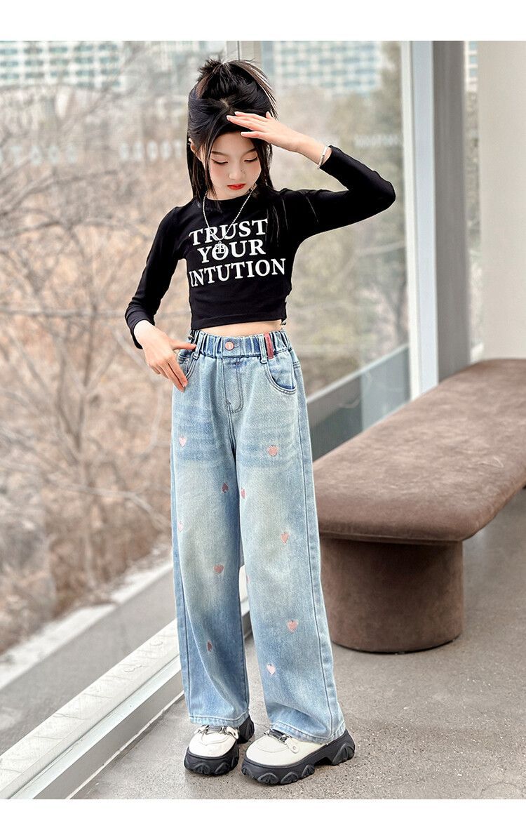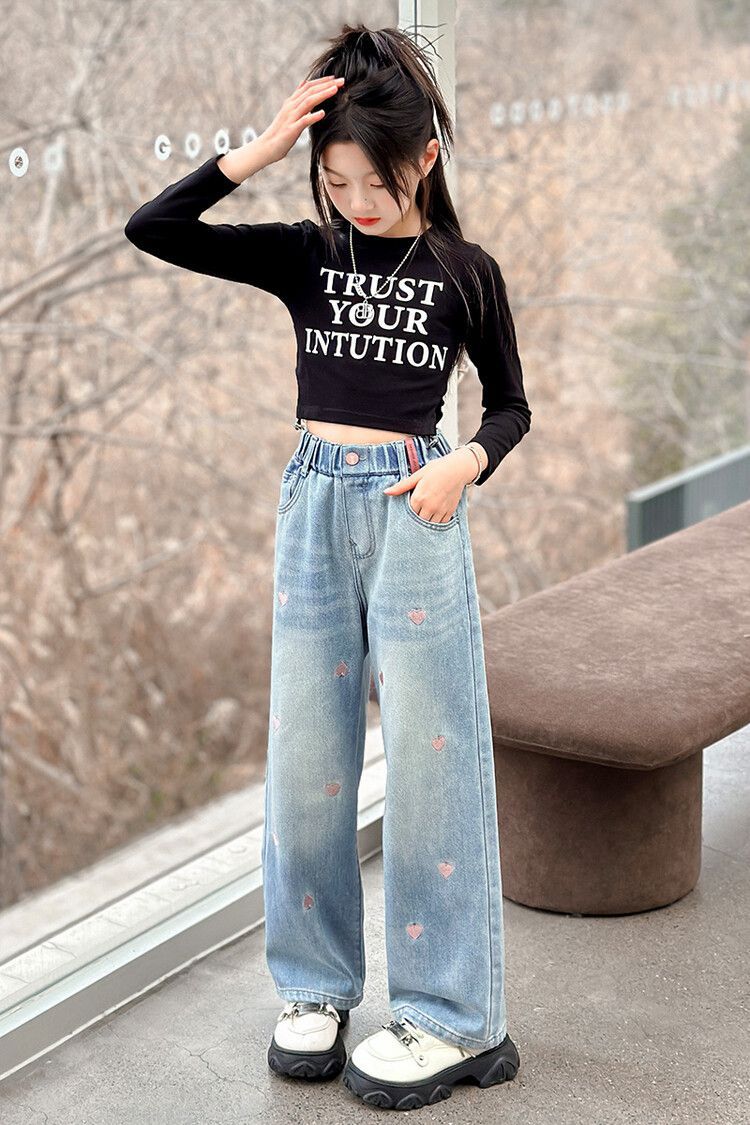 C08 широкие брюки с вышитым сердцем