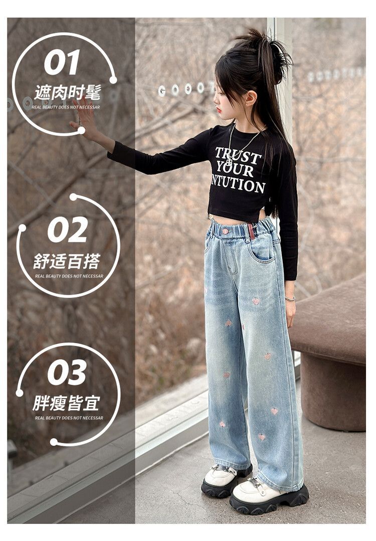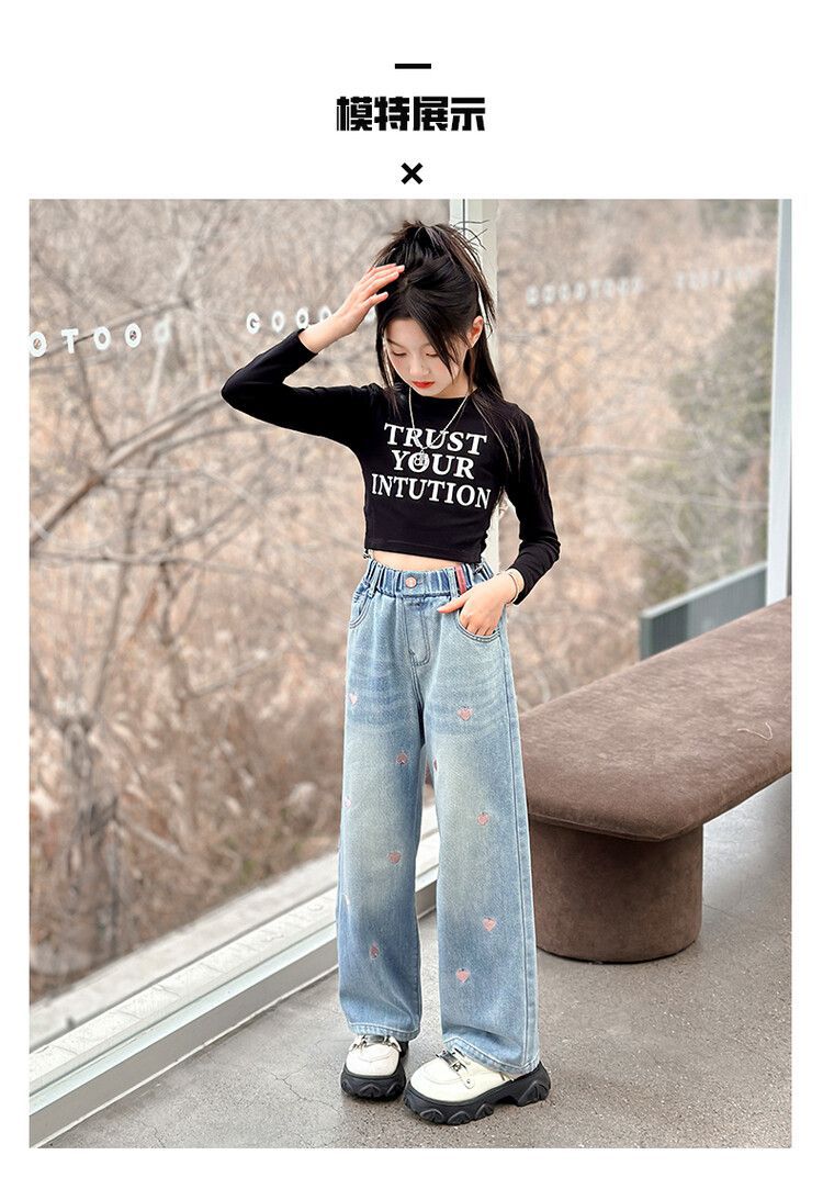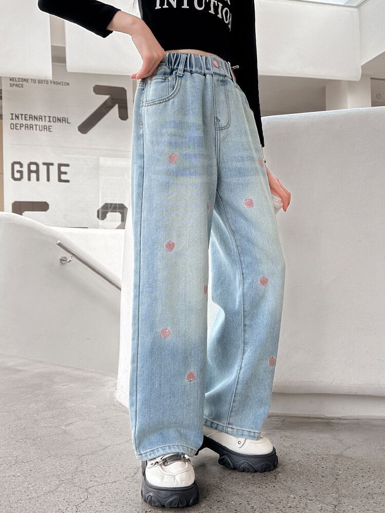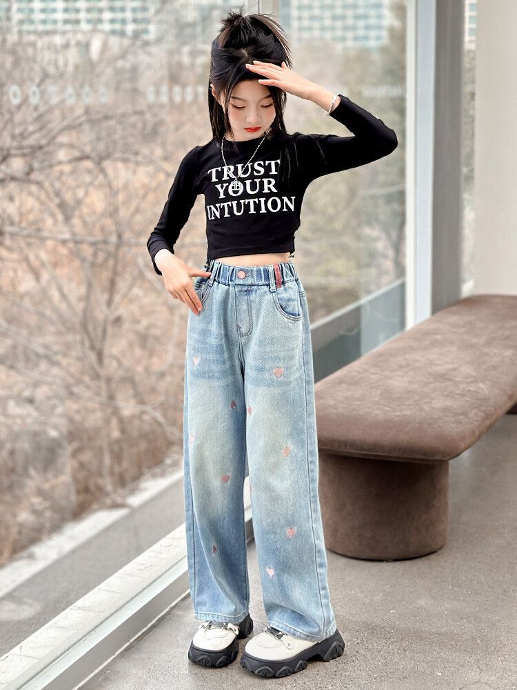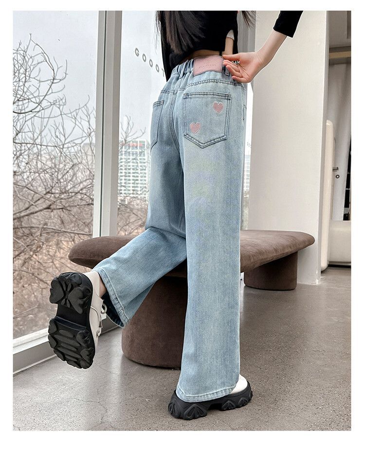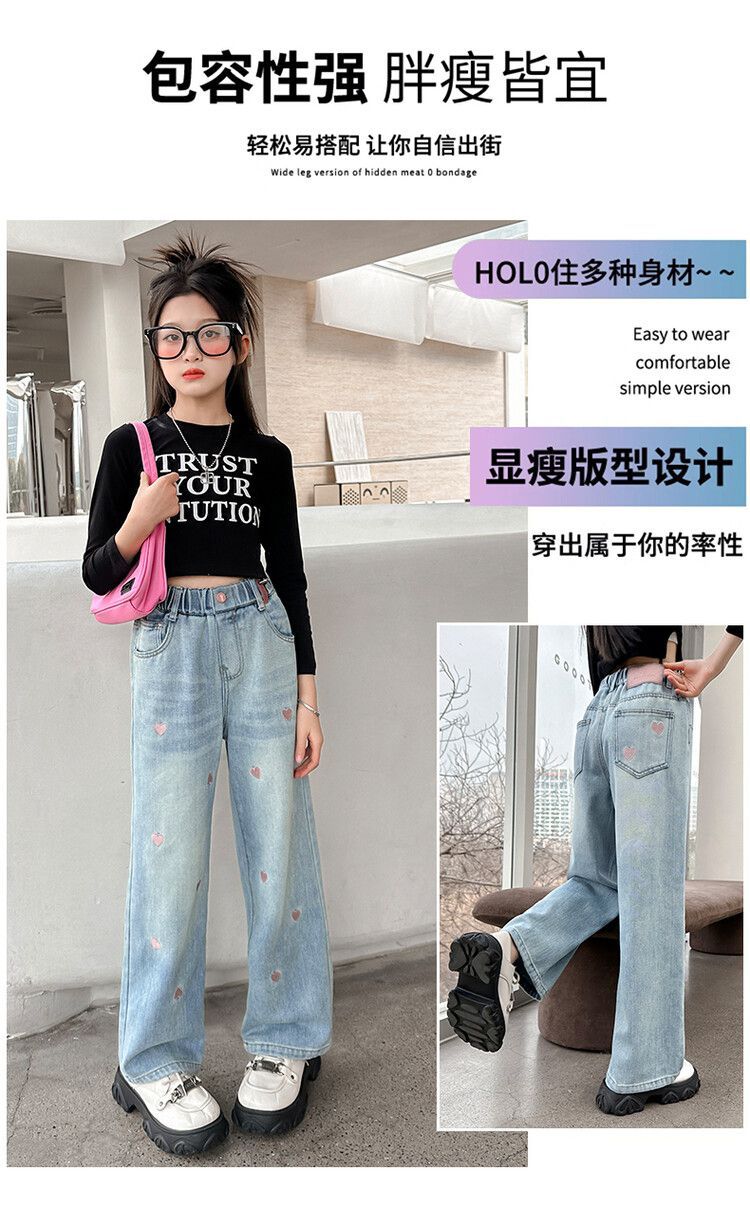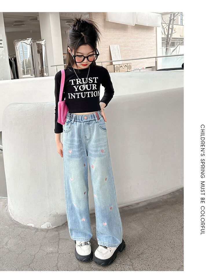 C08 широкие брюки с вышитым сердцем