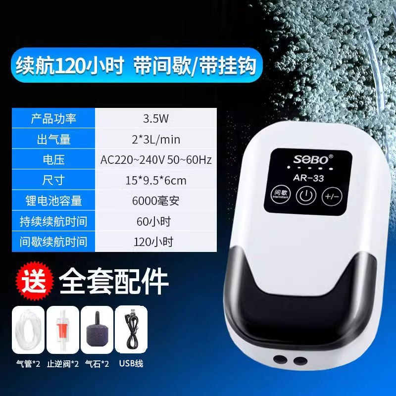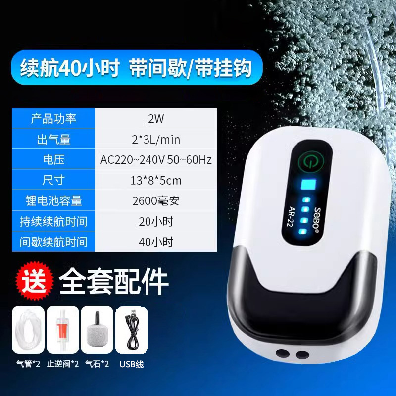 松宝充电氧气泵增氧泵户外钓鱼小型打氧机锂电池鱼缸专用USB便携式