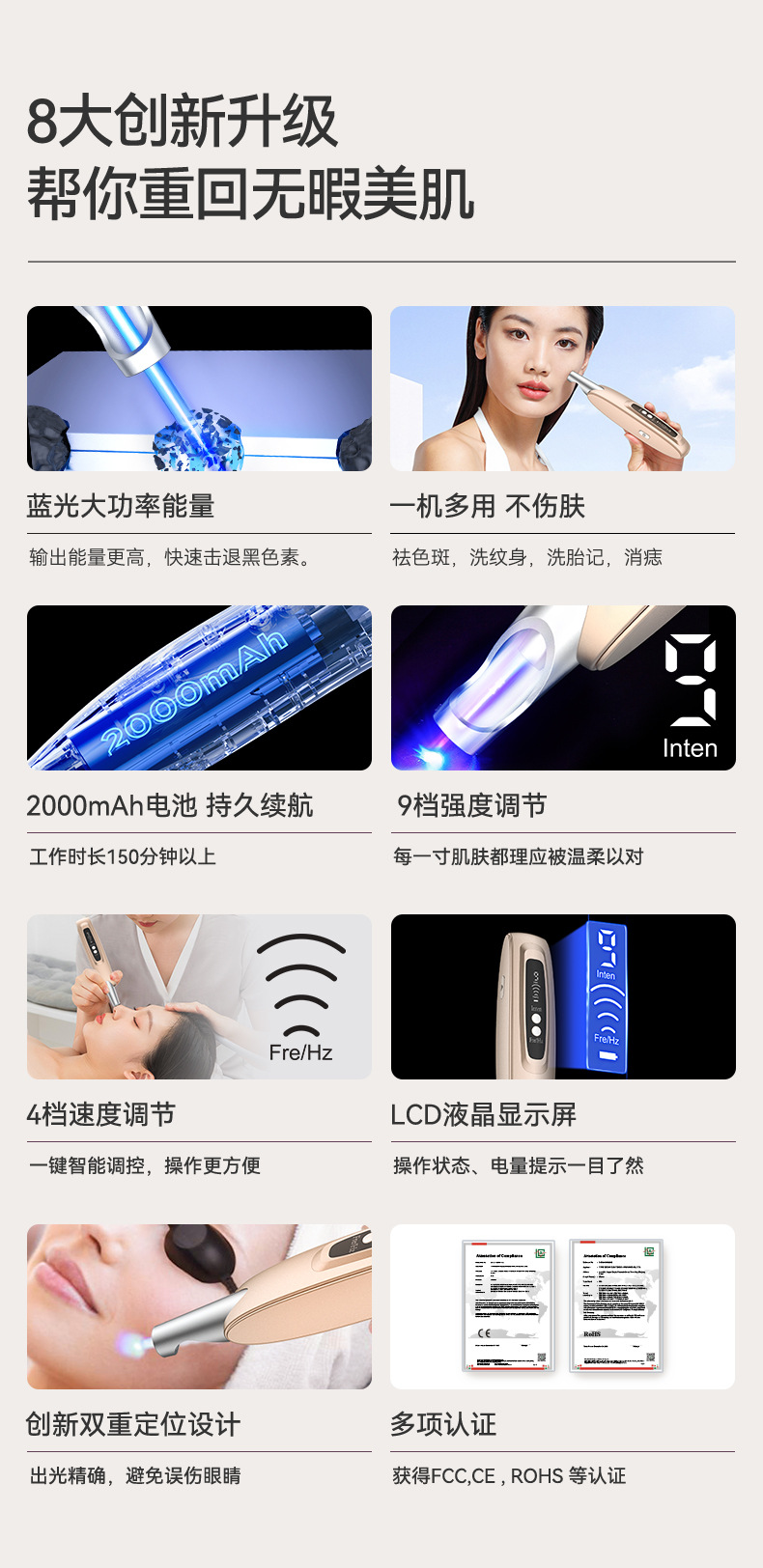 Трансграничное лазерное пикосекундное средство для удаления веснушек, ручка для удаления родинок, бытовое удаление прыщей с синим светом, косметический инструмент для татуировок, модернизированное, зарядное и портативное