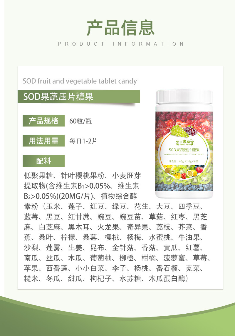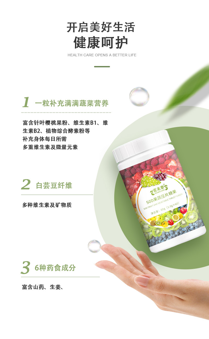Производство и переработка фруктовых и овощных таблеток-конфет S0D, OEM/ODM-производство на заказ, оптовая продажа для супермаркетов и бутылок для животных.