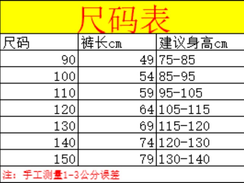 90cm; 100cm; 110cm; 120cm; 130cm; 140cm; 150cm