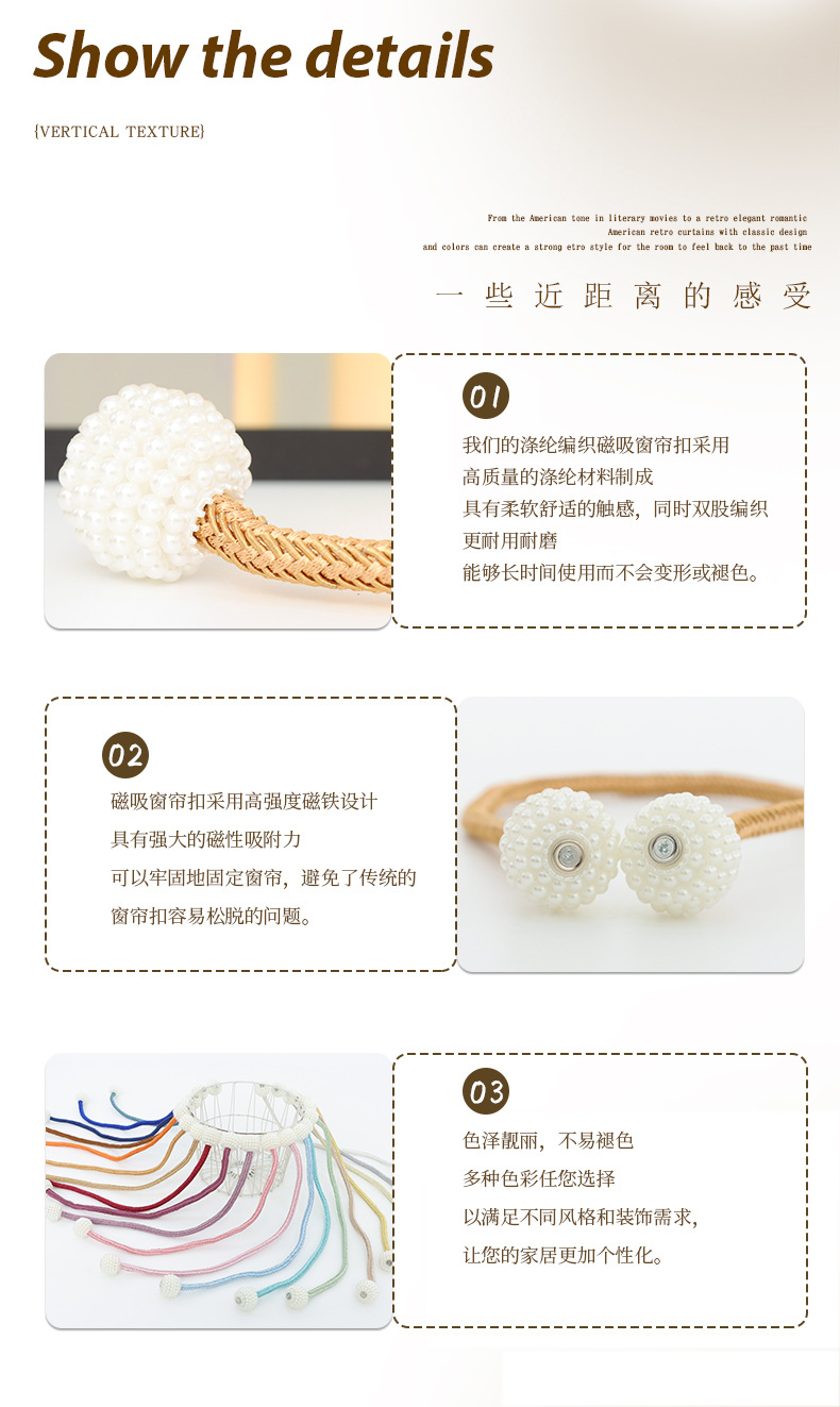 Производители прямых штор с жемчужной магнитной пряжкой без пробивания Современные простые шторы с ремешками с магнитной пряжкой