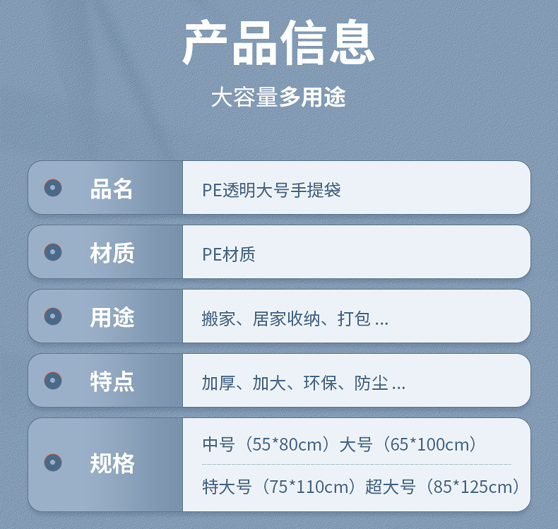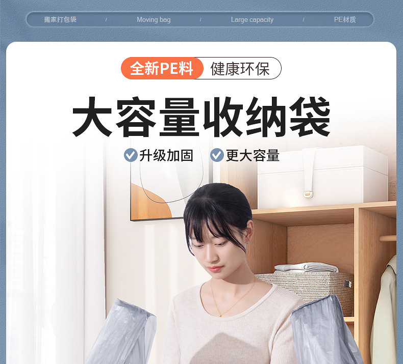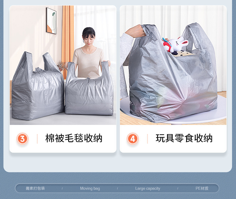 Двигаться в пакетах с хлопчатобумажным одеялом, багаж, большая емкость, пластиковый пакет для хранения, отделка, специальный движущийся артефакт