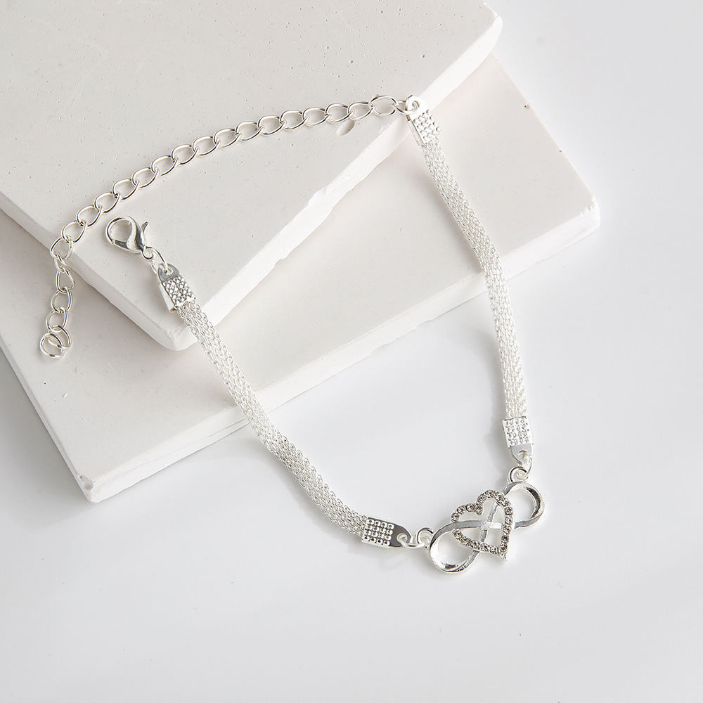 Европейский и американский стиль отдыха пляжная бриллиантовая любовь 8 слов бесконечный символ ножной цепи простой геометрической металлической цепи Anklet