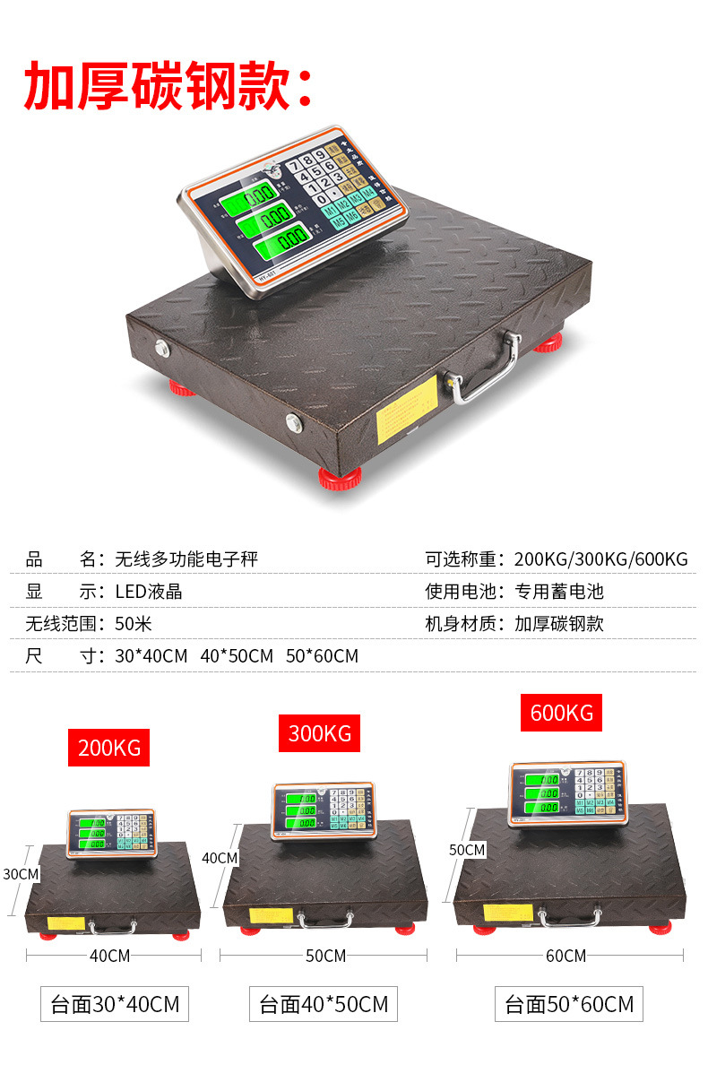 Беспроводные весы из углеродистой стали утолщенные 150 кг 32*42 см; Беспроводные весы из углеродистой стали утолщенные 200 кг 32*42 см; Беспроводные весы из углеродистой стали утолщенные 300 кг 42*52 см; Беспроводные весы из углеродистой стали утолщенные 600 кг 52*62 см; Беспроводные весы из нержавеющей стали 150 кг 32*42 см; Беспроводные весы из нержавеющей стали 200 кг 32*42 см; Беспроводные весы из нержавеющей стали 300 кг 42*52 см; Беспроводные весы из нержавеющей стали 600 кг 52*62 см; [Ручные беспроводные весы] углеродистая сталь утолщенная 150 кг 3; [Ручные беспроводные весы] углеродистая сталь утолщенная 200 кг 3; [Ручные беспроводные весы] углеродистая сталь утолщенная 300 кг 4; [Ручные беспроводные весы] углеродистая сталь, утолщенная 600 кг 5; [Ручные беспроводные весы] Нержавеющая сталь 150 кг 32*4; [Ручные беспроводные весы] Нержавеющая сталь 200 кг 32*4; [Ручные беспроводные весы] Нержавеющая сталь 300 кг 42*5; [Ручные беспроводные весы] Нержавеющая сталь 600 кг 52*6
