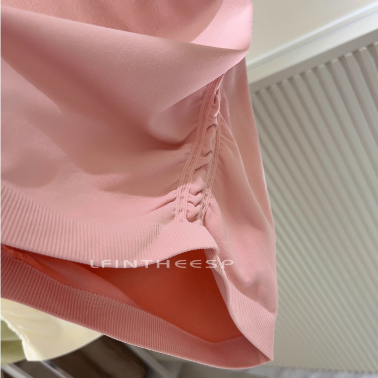 Мороженое складки пузырьки тонкие бесшовные V-образный вырез с короткими рукавами спортивные фиксированные подставки для йоги фитнес-топ женский