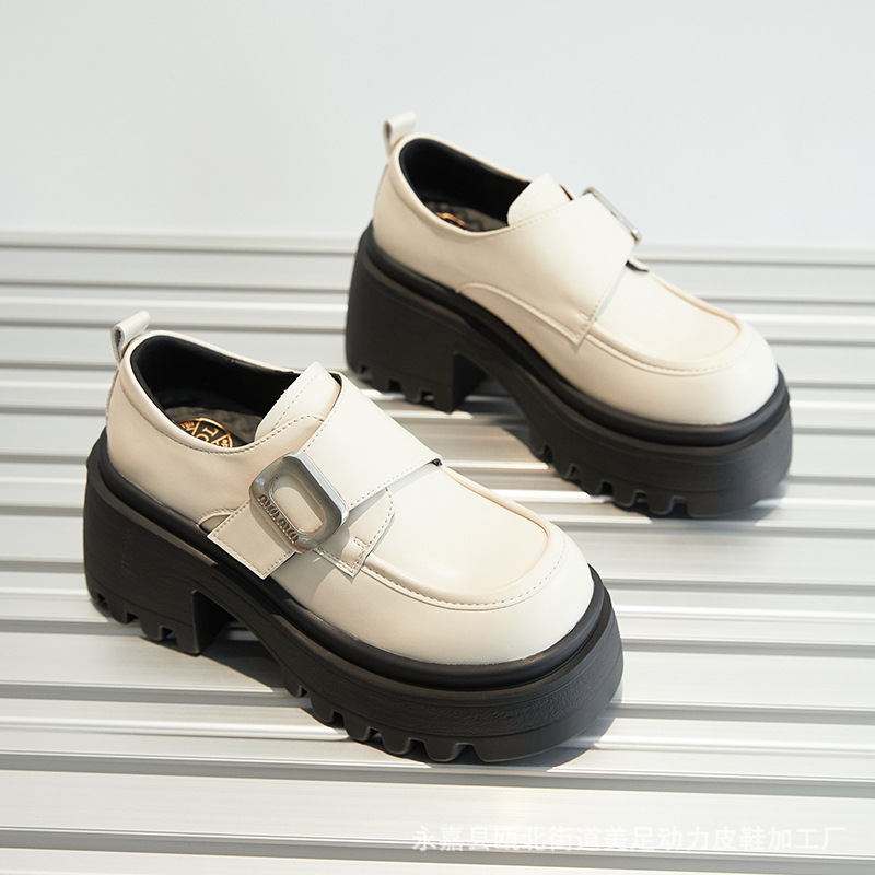 Женские кожаные туфли на толстой подошве в британском стиле, новые универсальные Лоферы для увеличения роста с круглым носком, туфли на массивном каблуке