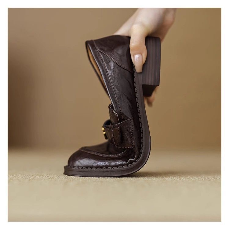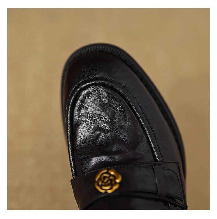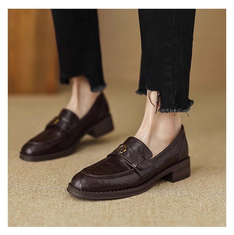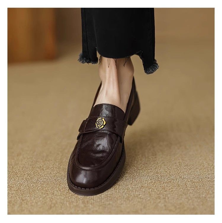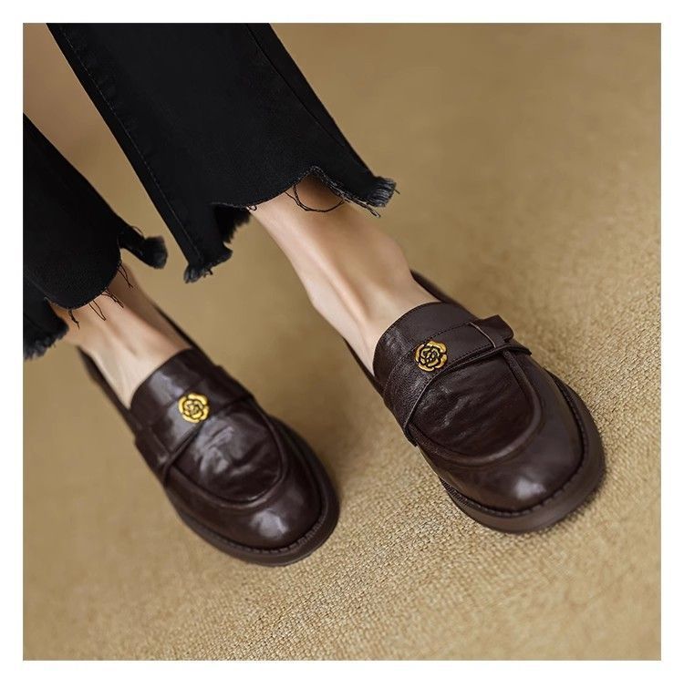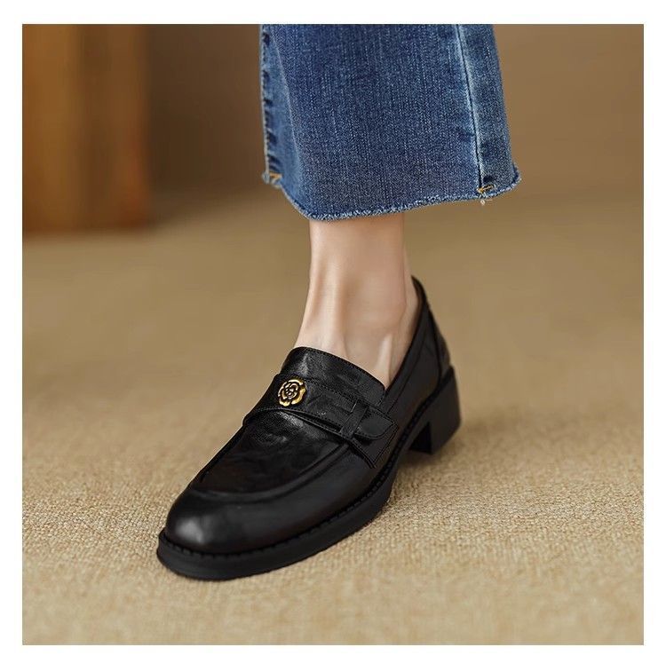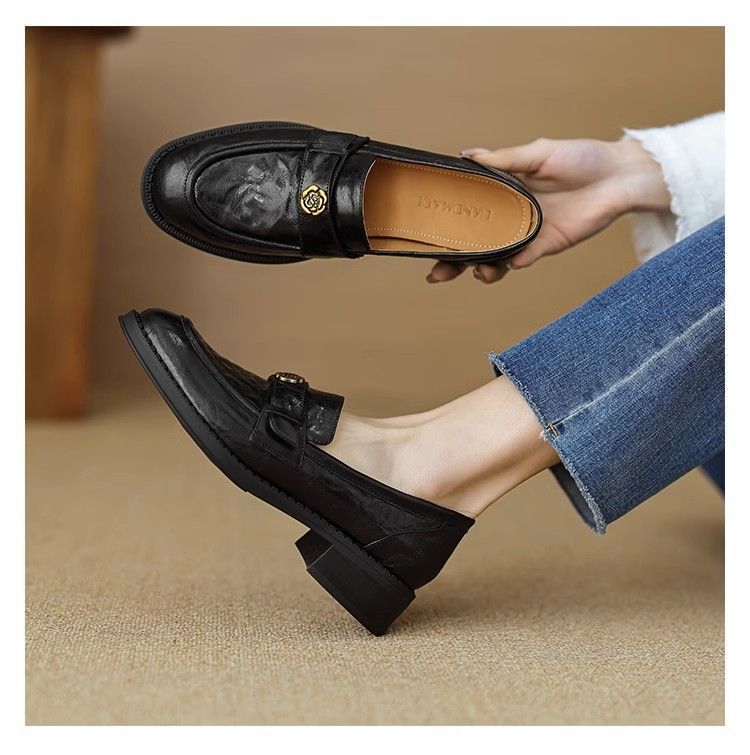 Ретро-лоферы с золотой пряжкой, туфли без застежек, новинка весны 2024, французская камелия, универсальные кожаные туфли в британском стиле, женские балетки