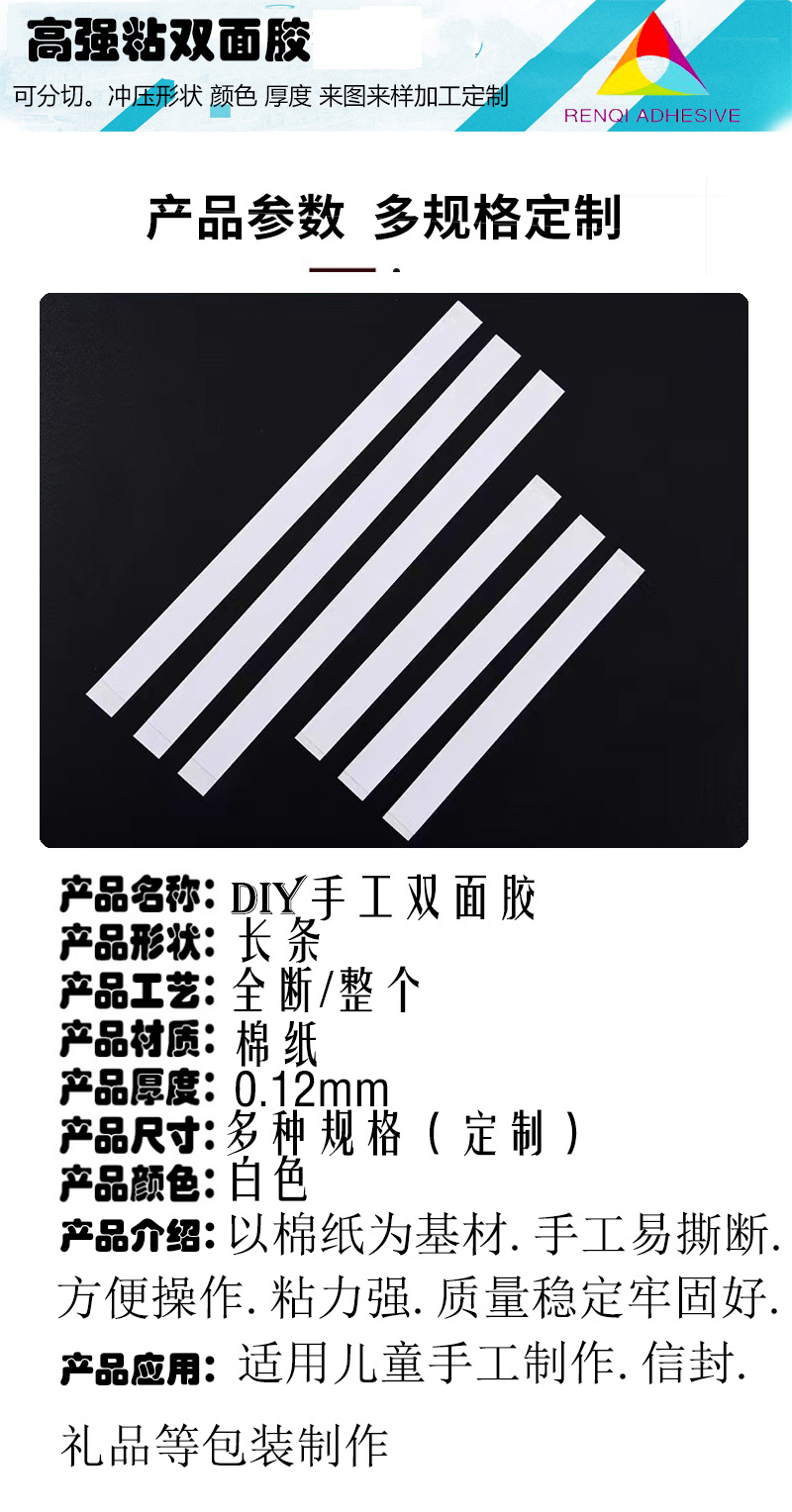 Двусторонняя клейкая лента для детского творчества, коробка с бумагой, хлопковая бумажная лента в форме полосок, экологически чистый клей