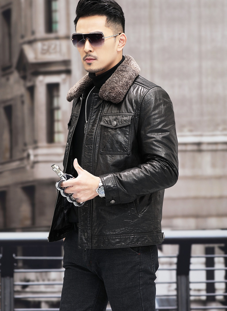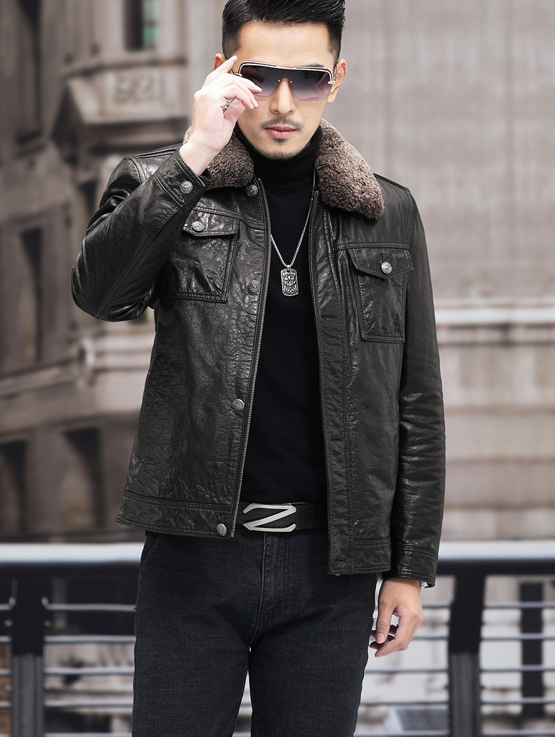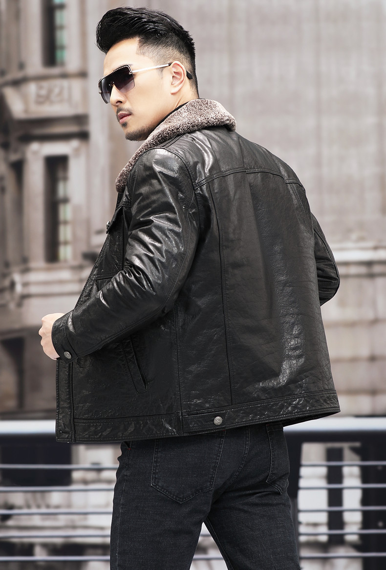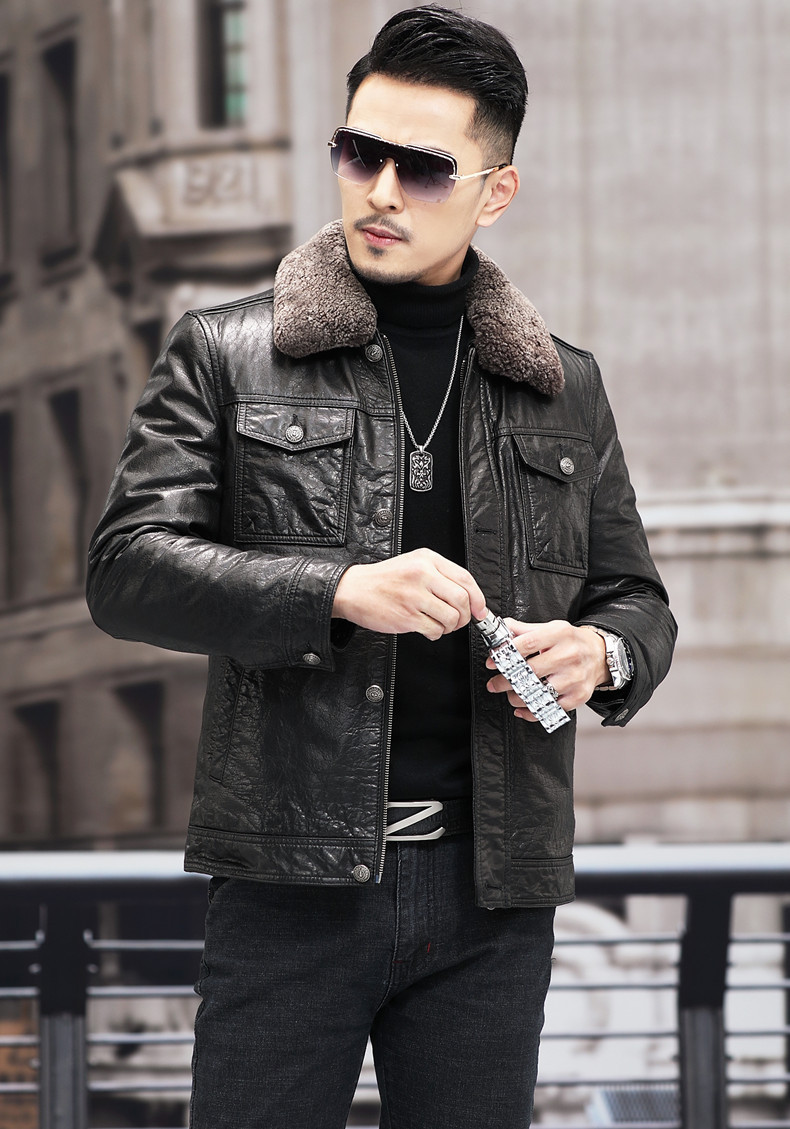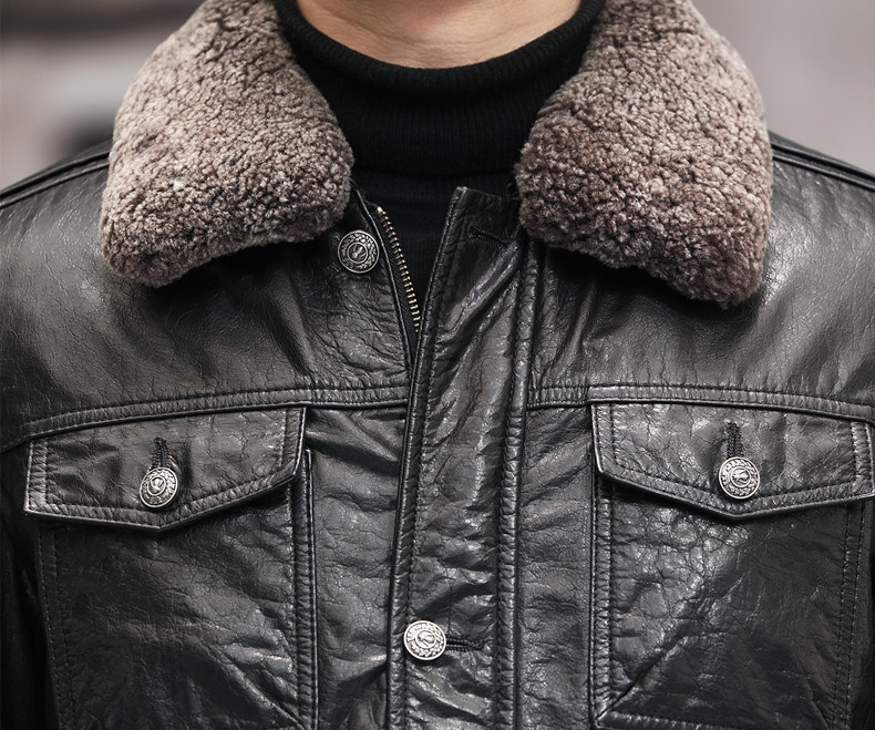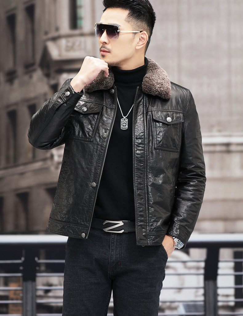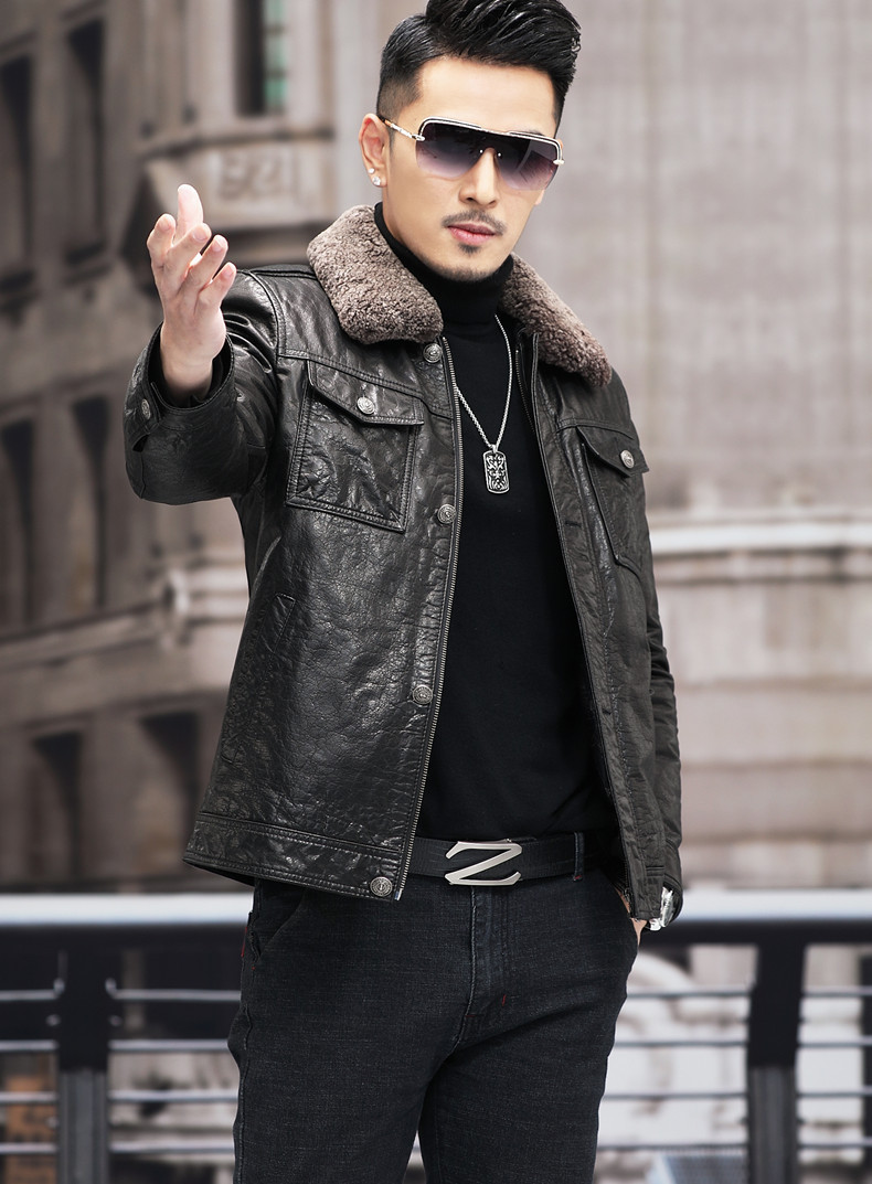 Мужское масло Haining воск из кожи головы пиджак пуховый ягненок шерстяной воротник съемный лацканный зимний кожаный пиджак толстый
