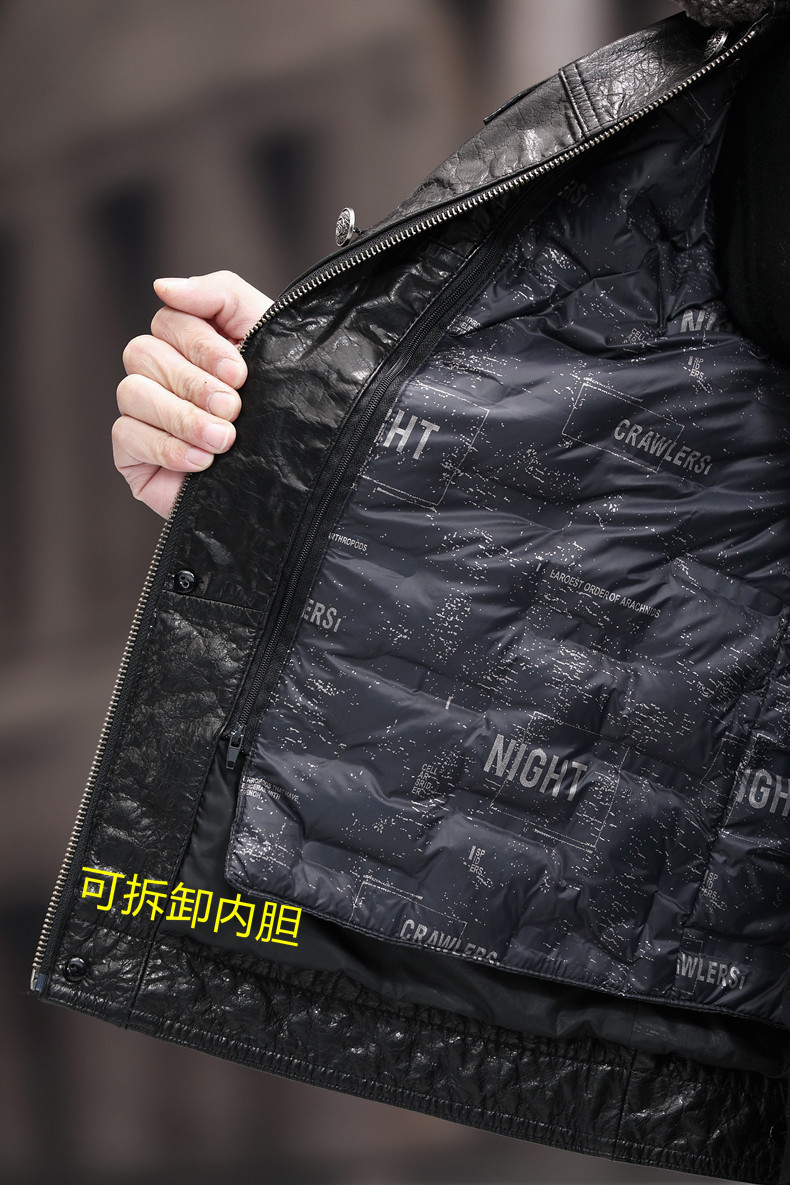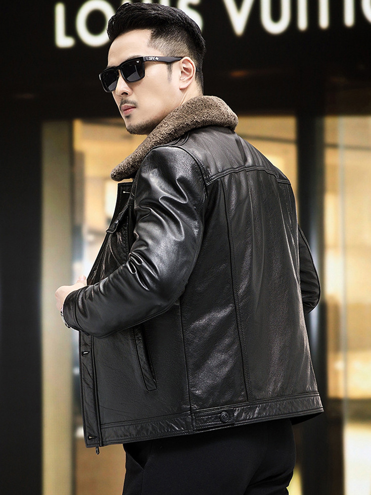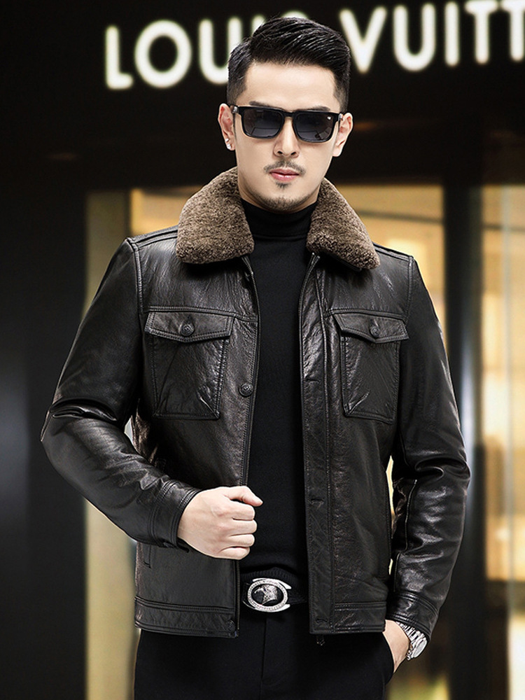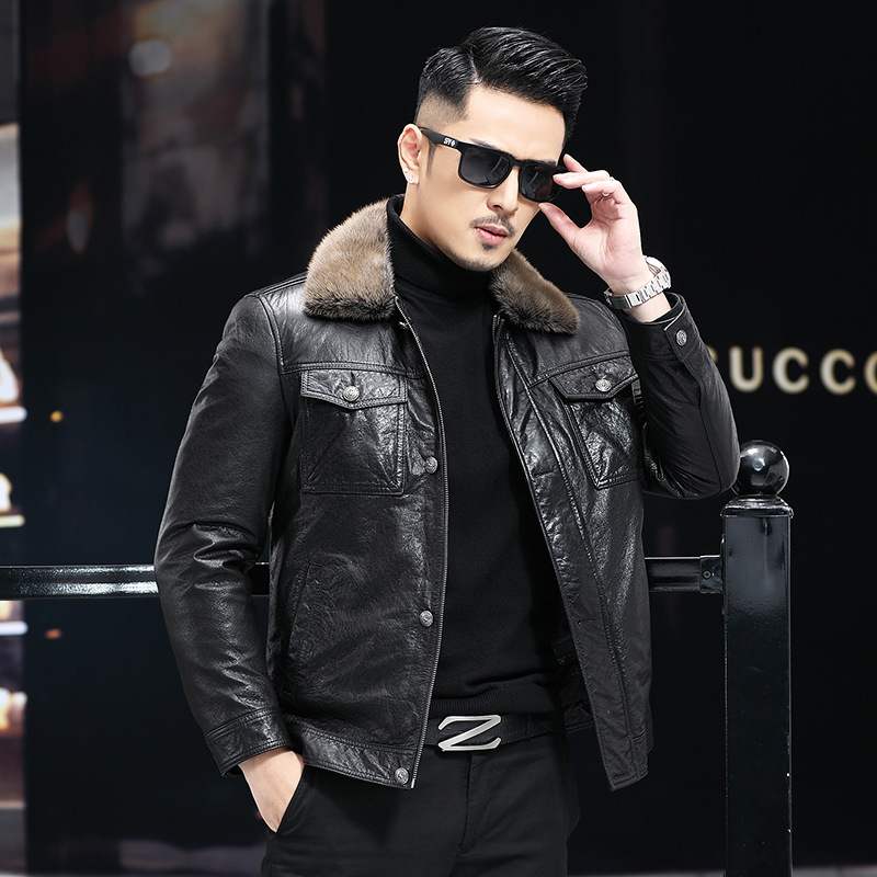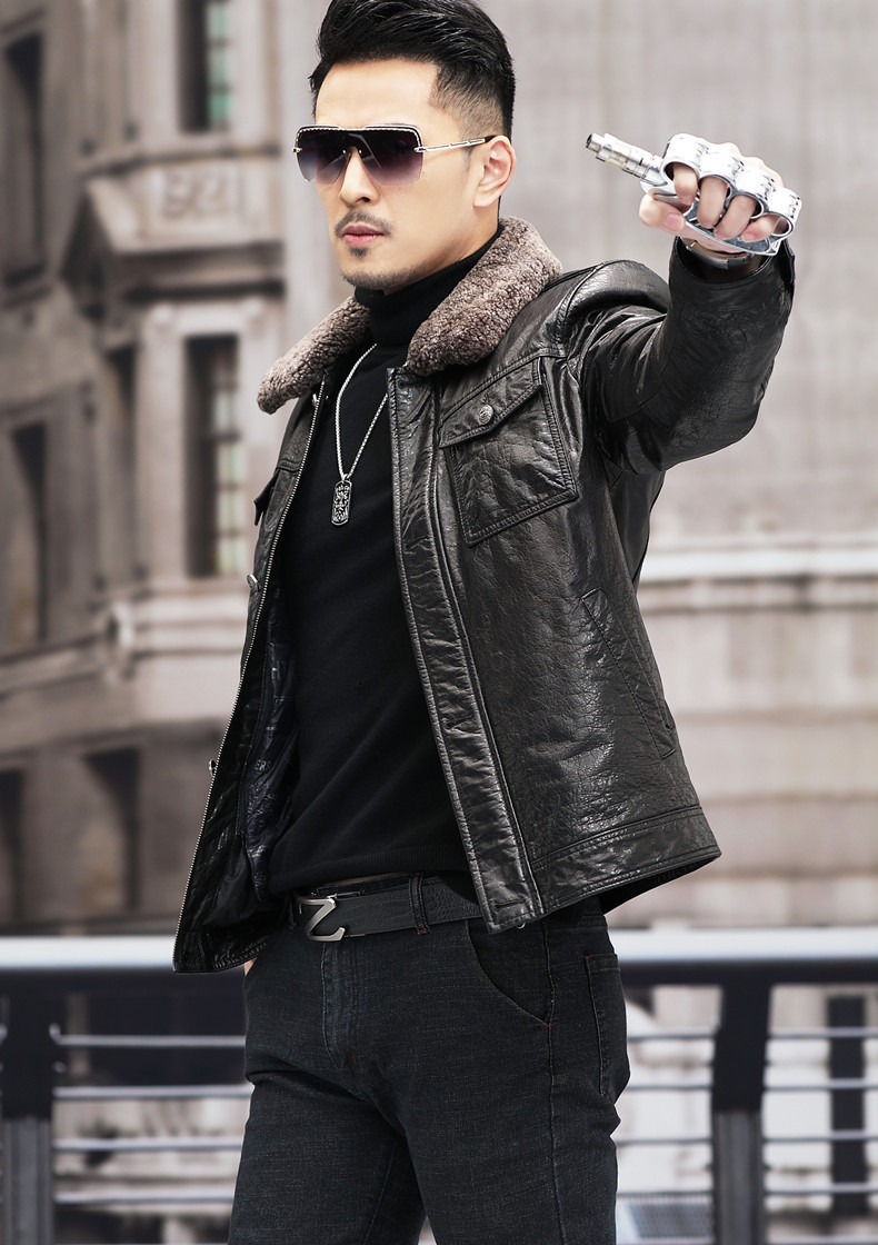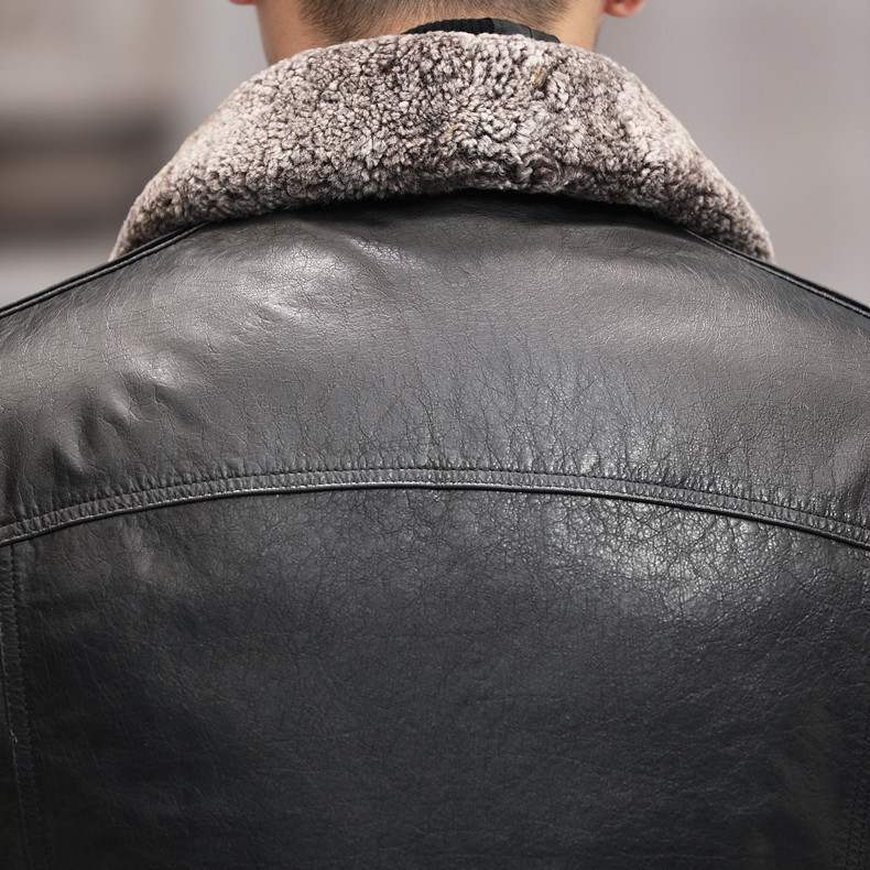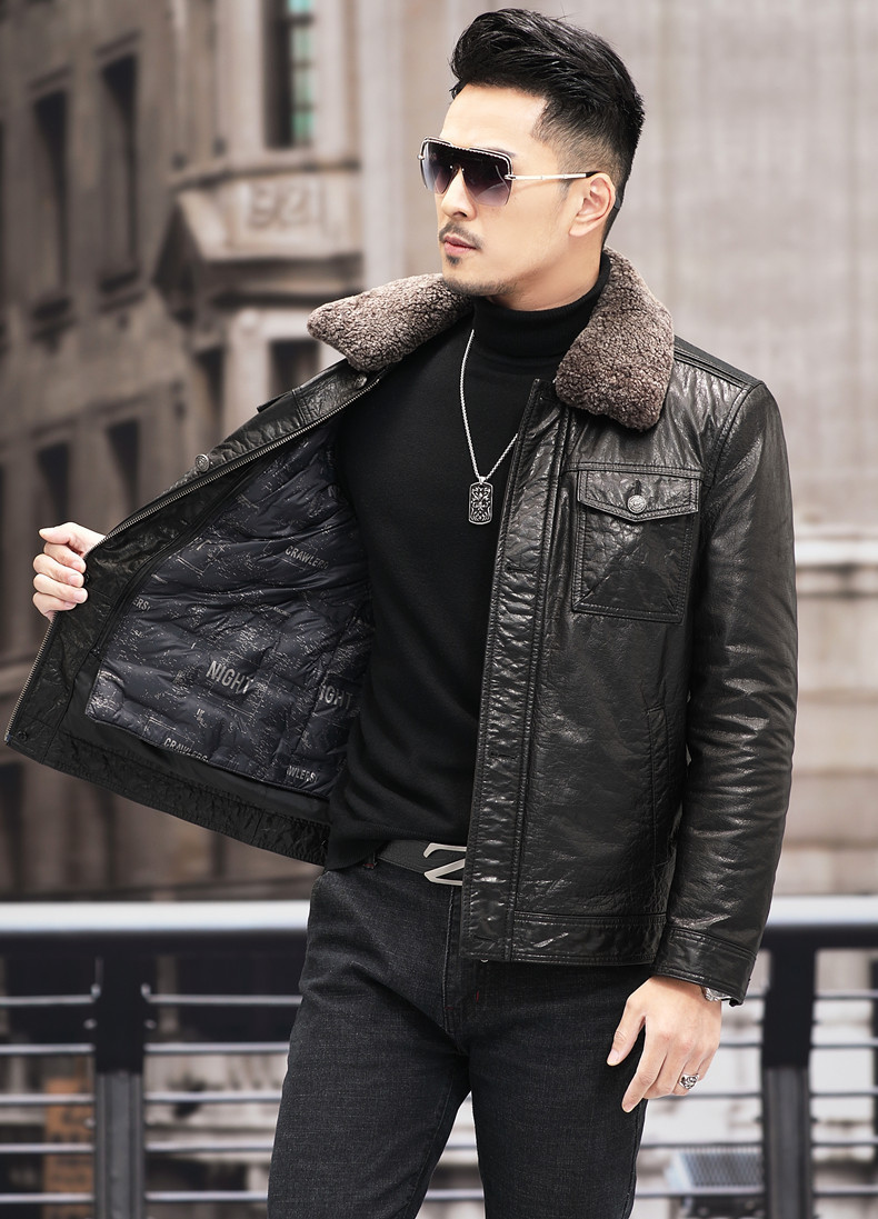 Мужское масло Haining воск из кожи головы пиджак пуховый ягненок шерстяной воротник съемный лацканный зимний кожаный пиджак толстый