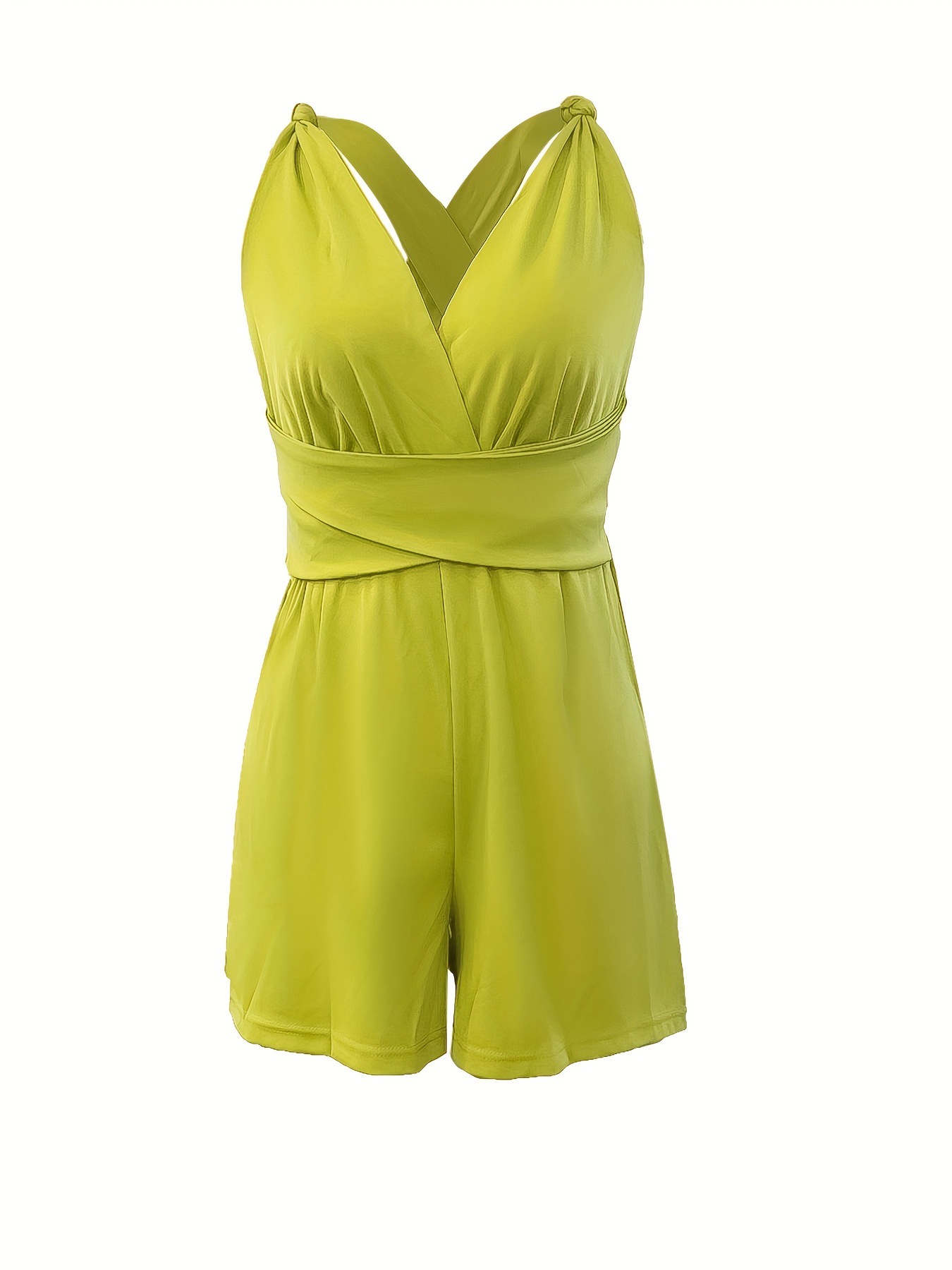 Новинка 2025 года: хит продаж на Temu — летний женский комбинезон без рукавов однотонного цвета с перекрестными бретелями и перекрестным дизайном.