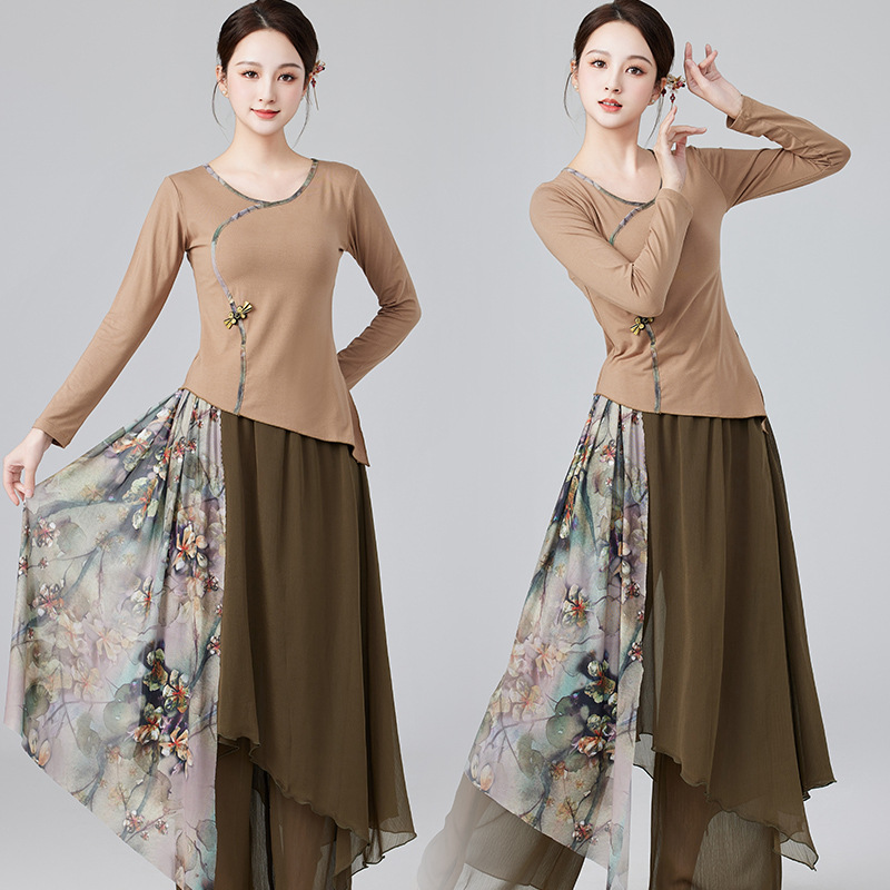Национальный стиль, одежда для квадрофильдинга (квадро-танцев), классический сценический костюм, элегантные длинные брюки-юбка, модальная одежда, наряд для выступлений, художественный стиль.