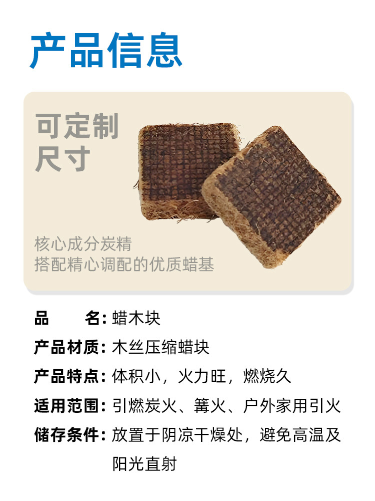 我公司生产烧烤用烧烤块,引火快,燃烧充分,用于烧烤燃料。