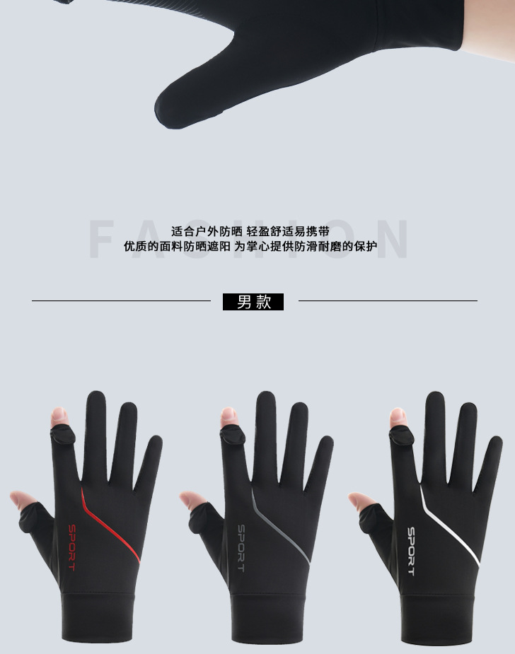 Солнцезащитные перчатки мужские летние УФ-защита Ice Silk дышащие езда на открытом воздухе Вождение Рыбалка Luya Tread-out Express