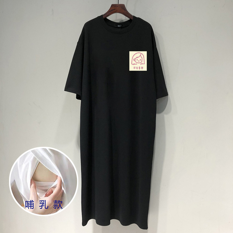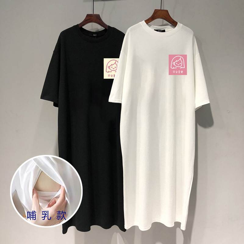 Платье для беременных кормящих 2024 летнее платье для кормления верхняя одежда кормящих открытый кормящих одежда с коротким рукавом средней длины платье для кормления