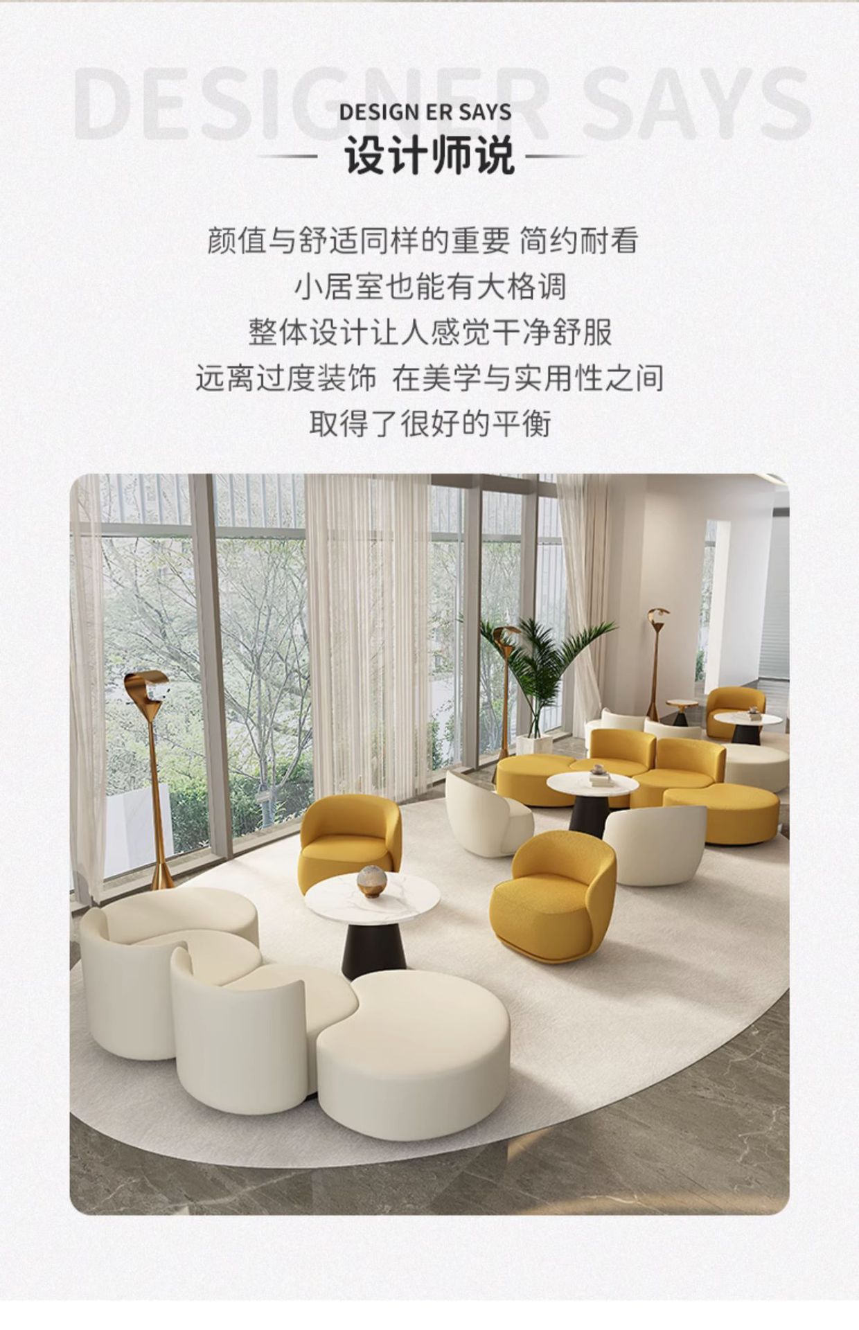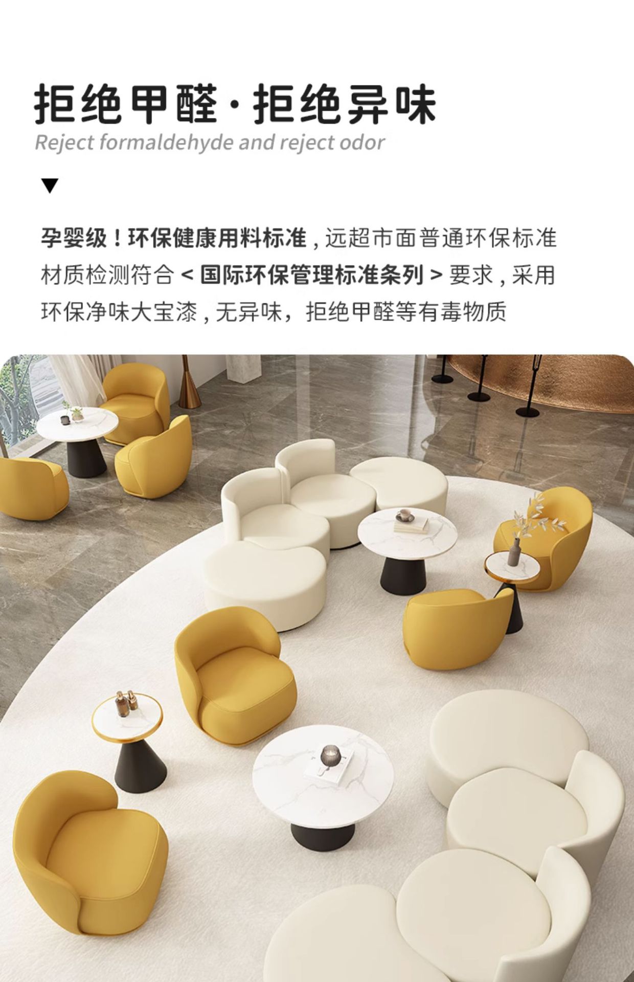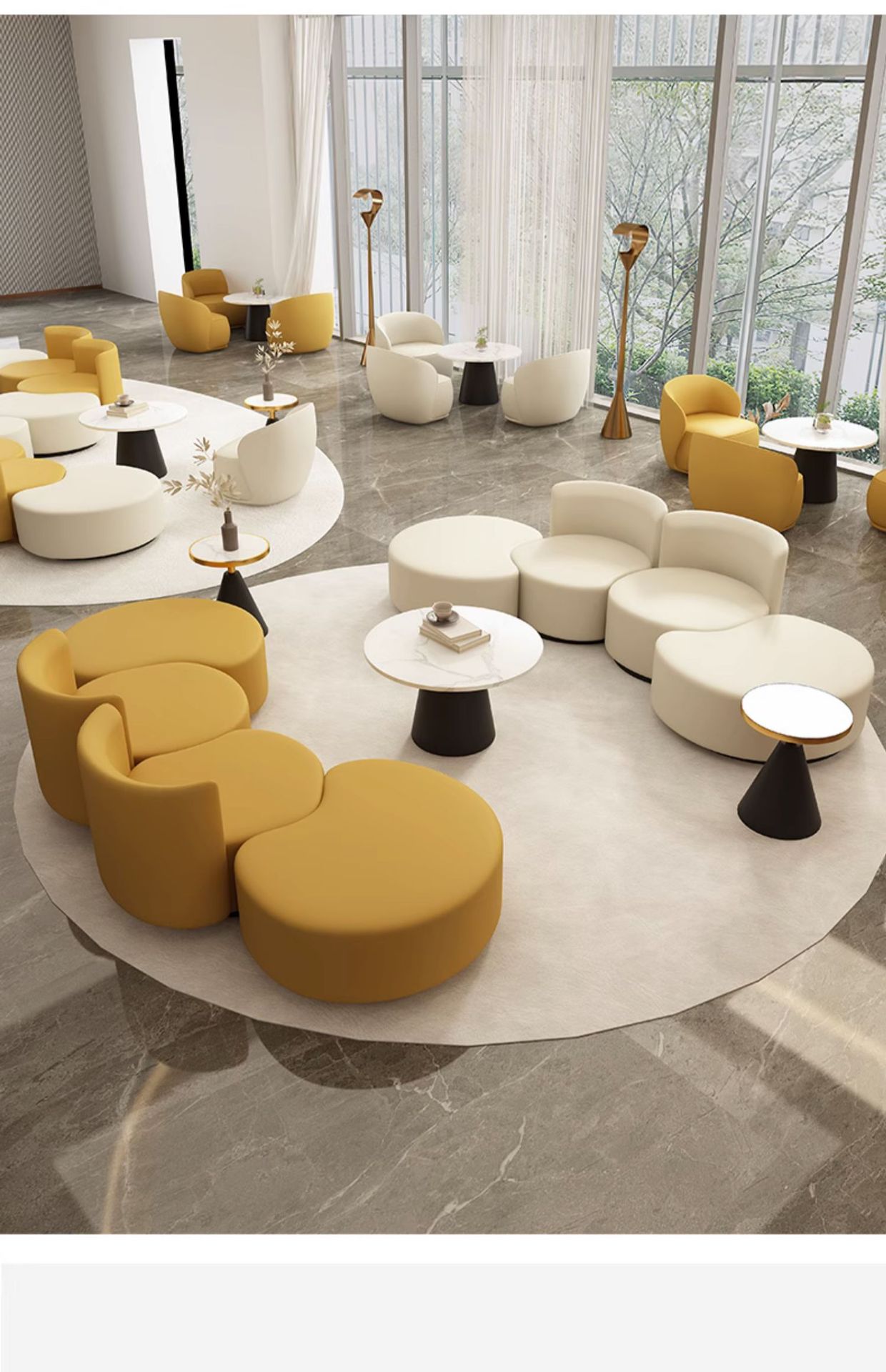 Одноместный диван (кремово-белый); Одноместный диван (желтый); Свободный комбинированный диван со спинкой (кремово-белый); Свободный комбинированный диван со спинкой (желтый); Свободный комбинированный диван без спинки (кремово-белый); Свободный комбинированный диван без спинки (желтый); 50 Круглый Чайный стол; 60 Круглый чайный стол; 80 круглый чайный стол; Четырехместный диван комбинированный (кремово-белый); Четырехместный диван комбинированный (желтый); Четырехместный диван комбинированный (Желтый + Бежевый); Четырехместный диван комбинированный (бежевый + желтый); Комбинация восьмиместный диван (цвета можно подобрать свободно)