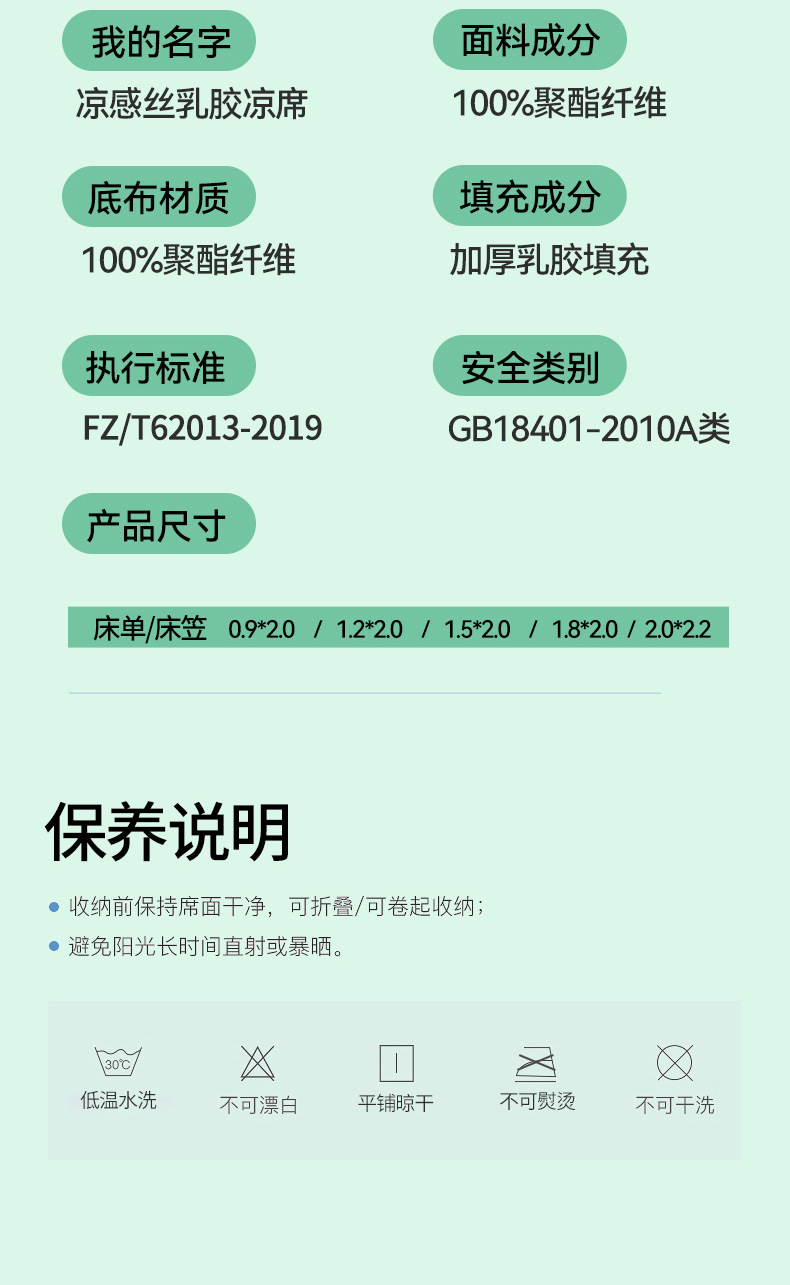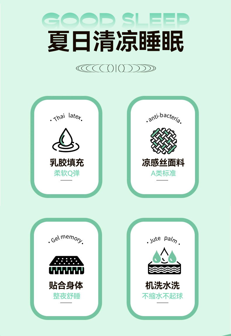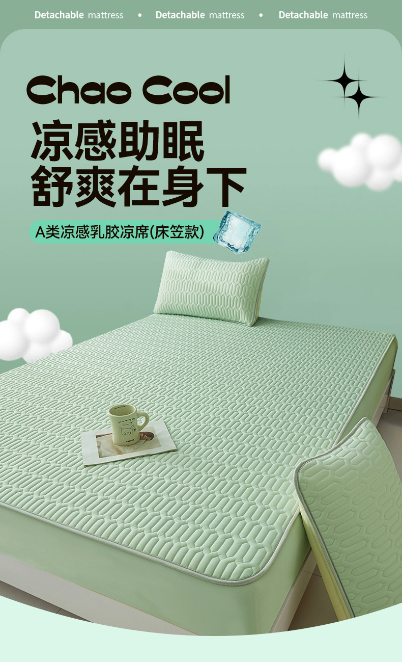泰国乳胶凉席床笠款;尺寸;90*200cm,120*200cm,150*200cm,180*200cm,200*220cm,A类凉感丝面料,乳胶填充,防滑底布,婴幼儿可使用,凉感助眠,舒适凉爽冰丝床单薄床垫,欢迎国内跨境电商合作,支持店管家,密文下单,量大优惠请联系客服
