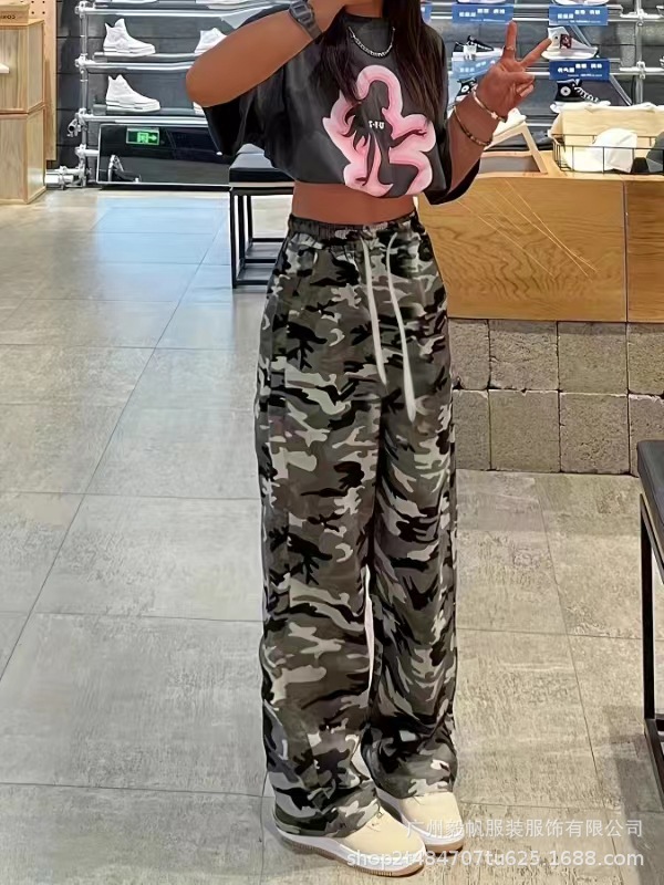 2024 модные камуфляжные брюки внешней торговли, новые эластичные повседневные брюки на шнуровке с высокой талией для похудения
